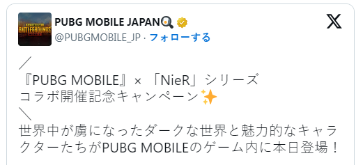 KRAFTON JAPAN日前宣布,《绝地求生》手游版联动《尼尔》活动上线(日服),来自《尼尔》系列的人气角色2B、9S等经典衣装皮肤以及限定活动道具登场,感兴趣的玩家可以关注下。
