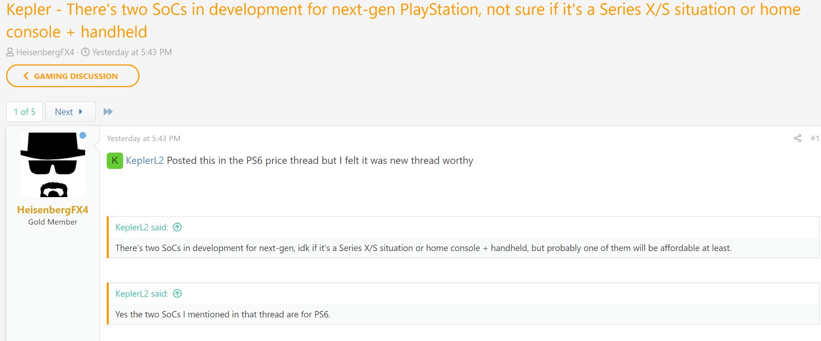 PS5 Pro刚公布不久还未发售,这两天不断有关于PS6的消息传出。最近路透社报道称PS6继续沿用AMD芯片组,因为英特尔在芯片价格上和索尼未达成一致,在竞标中落败。现在又有关于PS6 SoC的消息流出。 在国外论坛NeoGAF上,知名AMD舅舅Kepler爆料说AMD正在为PS6开发两款SoC,但他无法确认PS6是否会是Xbox Series X和Xbox Series S那样的情况,还是说一个是家用主机,另外一个是手持设备情况。 对于其中一个,他补充说应该能让大部分能买得起,暗示这两个机种有着明显的性能差异。 实际上,本世代微软已经亲身验证了一款主机推出高性能版和廉价版的做法不可取,这不但伤害了自身,也让大量开发者吐槽难以为低配版移植优化的情况。相信索尼自己也很了解这个情况,不知道索尼自己将有什么样的应对和策略。 近期索尼公布了PS5 Pro,首发价格700美元,让很多玩家直言太贵,买不起。对于PS6的首发价格,你认为会是多少? |