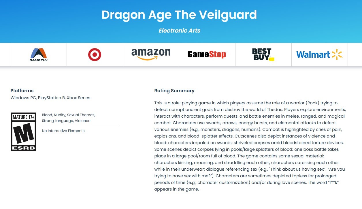 《龙腾世纪4》被ESRB评为成人级 游戏血腥还有裸露