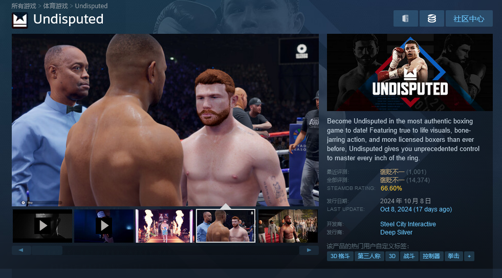 独立拳击游戏《无可争议(Undisputed)》在上市第一周就售出了超过 100 万份。这是多年来第一款大型拳击游戏,最初于 2023 年 1 月以抢先体验形式发售,并于今年 10 月 11 日正式推出,登陆了 PC、PS5 和 Xbox Series X|S 平台。 开发商 Steel City Interactive 的创始人兼首席执行官 Ash Habib 表示:“我们对《无可争议》的反响感到非常震惊。我们的目标仍然是创造格斗运动游戏的新标杆。跨越这一里程碑表明我们正在实现这一目标。” 《无可争议》是自 EA 2011 年《格斗之夜冠军》以来首款获得授权的拳击游戏。开发商 Steel City Interactive 由英国的 3 兄弟创立,由一支 70 人的团队创建,其首款游戏包含四大全集联盟中的 3 个,以及超过 70 名获得许可的拳击手,这对于独立开发发行的游戏来说是一项壮举。 游戏推出后评价褒贬不一,开发者表示游戏是“一个可以继续开发的优秀基础”。游戏的销量表明,该类型有着明显的市场需求。Steel City Interactive 承诺,未来还将推出更多游戏,“《无可争议》系列也将推出更多游戏。” |