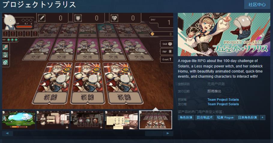 今日(10月30日),Rogue-lite角色扮演游戏《Project?Solaris》Steam页面公布,发售日待定,暂不支持中文,感兴趣的玩家可以关注一波。 游戏介绍: 这是一个关于一位魔法力量较弱的女巫 Solaris 和她的人造助手(homunculus)的100天冒险故事。 玩家每天可以选择六种活动来提升能力、学习技能、赚取金钱,同时还要面对敌人。他们还可以开发武器装备,休息恢复体力。 游戏的最大特色是其精美的全动画战斗和紧张刺激的QTE战斗。各种各样的增益和减益效果让战斗更加有趣。如果失败,则必须从第一天重新开始,但通过反复挑战寻找策略也是一种乐趣。 此外,游戏中的角色也非常吸引人。与各种角色的互动进一步深化了故事,包括优秀的对手巫师Tetia、商店老板August、严格但善良的母亲Croise,以及管理城镇的三位智者Balthazar和Melchior。 游戏特点: |