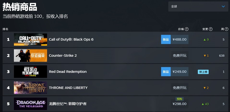 《荒野大镖客:救赎》Steam特别好评 热销榜排名第三
