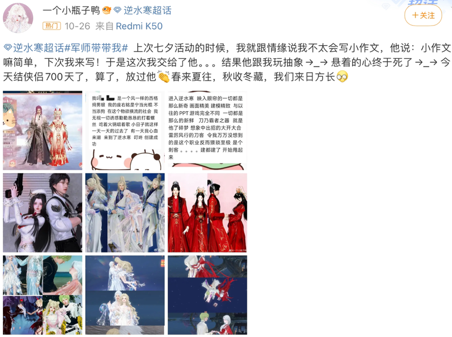 自古以来,婚服都是婚礼上浓墨重彩的一笔,端庄典雅的凤冠霞帔、洁白无瑕的白婚纱、流光溢彩的新中式嫁衣……都承载无数人对爱情和婚姻的期许。 而就在最近两天,一款历时2190天打造而成的顶奢汉制婚服横空出世,炸出了五千万人关注!更让人惊讶的是,其背后的设计者不是某某高定设计师,也不是大家熟知的婚服奢牌,而是一款网游。 是的没错,这说的就是网易旗下的《逆水寒》。最近,官方豪气地给玩家送出了结婚六周年的纪念福利—华丽汉制婚服【珠联嘉礼】&【璧合天成】,见证玩家长达六年之久的绝美爱情! 这两套时装凭借华丽大气的造型,以及重工设计的精细感,一跃为《逆水寒》所出外观中的时装顶流。而相较于其他游戏的外观,《逆水寒》这款婚服,不论是1:1还原汉制婚服的庄重奢华,还是在细节上的出色把控,可谓是对友商造成了全方位的降维打击。 女款【珠联嘉礼】黑袍红裙,经典配色风华端庄。剪裁设计上宽袖窄腰,勾勒伊人曼妙身姿,颇有几分“战国袍”的味道。玄色华服上乘云绣样蜿蜒游走,如星辰一般熠熠生辉,通身佩戴的玉珏宝石似乎昭示了这场婚礼的盛大,腰间红绸宛如月老红线所化,与命定之人执手到老。 男款【璧合天成】则自带王者霸气,金色上衣与黑袍大袖混搭,威严中不失华贵。肩头精巧玉器环绕,贵气十足却又增添了几分力量感,头发利落束起,配上赤金冠冕,一看便知非凡气度。与女号同款的华丽珠宝、绮丽红绸,仿佛将一双璧人紧系在一起,共诉“愿得一心人,白首不相离”的脉脉爱语。 除了细节极致,风格奢华重工,这两套时装的设计意义也是十分深刻,形制裁剪以汉制服饰中的“战国袍”为灵感设计,再结合婚服“珠联璧合、龙凤双飞”的概念,这不就是祝有情人永结“秦晋之好”吗?寓意相当美好,足见《逆水寒》官方守护玩家爱情的真诚和隆重。此外,传统文化与现代审美的绝佳结合,也带领玩家穿越时光感受古代婚礼的缱绻甜蜜,中式美学的宿命感和仪式感简直绝了! 不过,虽说这两套时装颜值绝美,但想要免费获得却也不是那么容易,门槛甚至可以说有点高,只有在游戏中结缘长达6年的老夫老妻或是双方友好度达到60万的玩家,才能够免费领取官方随得这份“份子钱”,作为彼此六年爱情长跑的定情信物。 因此可以说,能拿到的情侣玩家完全就属于“小金婚”级别了,毕竟逆水寒运营至今也才六年多,这不就相当于玩家刚开服就在一起了吗,意义非凡。 到这儿还不算完,《逆水寒》为了庆祝玩家结婚六周年,除了免费送有情人高端大气上档次的婚礼服装,还在微博平台上发起了江湖表白挑战#军师带带我#活动。一方面,官方邀请那些恋爱军师为江湖孤狼们出出主意,如何脱单,另一方面,也为有情人倾诉相思提供了难得的机会,换言之就是公费撒狗粮~ 以至于活动刚开启,微博话题下秒变大型秀恩爱现场,满屏都是粉红泡泡,玩家偷师的偷师,有缘人互诉衷肠的爱情小作文也不少,随便刷一刷,都是甜蜜暴击。 有从战场上不打不相识的相爱相杀款,也有师徒组双向暗恋成真款,甚至还有很多从虚拟走向现实,从逆水寒走向婚姻的奔现选手……无数种奇妙的缘分在这片会呼吸的江湖交织,上演一出出宿命相逢。 不得不说,《逆水寒》属实是一款“脱单神器”。优质且丰富的社交玩法为很多玩家寻找到了人生中的另一半,他们在虚拟世界中相遇相知相爱,还有不少人奔向现实结婚生子,尤其官方每年还会推出周年纪念日活动,见证有缘人间的真挚情谊。而这种宠粉的态度,既是游戏制作者以玩家为本的初心体现,也是运营6年多,游戏热度不减的底气。 |