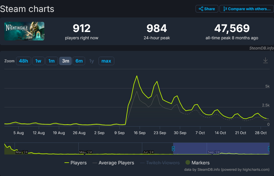 生存游戏《夜莺传说》开发商 Inflexion Games 确认,作为公司重组的一部分将进行裁员。 在向 GI.biz 发表的一份声明中,公司确认了裁员消息,并将部分原因归咎于游戏行业的现状。 公司的声明写道:“在探索了许多选择之后,我们做出了重组工作室的艰难决定,以确保我们的长期可持续性。遗憾的是,这意味着我们要与一些才华横溢、敬业的团队成员告别。” “我们在整个过程中的重心将是以共情、尊重和关心来应对每一个受影响的人的问题。我们正在尽一切努力帮助他们渡过这个时期,并寻找新的机会。” 公司还承认,《夜莺传说》在抢先体验阶段的财务表现并不理想,公司不可能维持目前的规模。根据 Steam 后台数据显示,游戏在 2 月推出时同时在线人数达到了 4.7 万人的峰值,然而之后持续下滑,过去 30 天的峰值仅为 3000 人(24 小时峰值仅为 984 人)。 据匿名员工透露,至少有 22 人受到裁员影响。 |