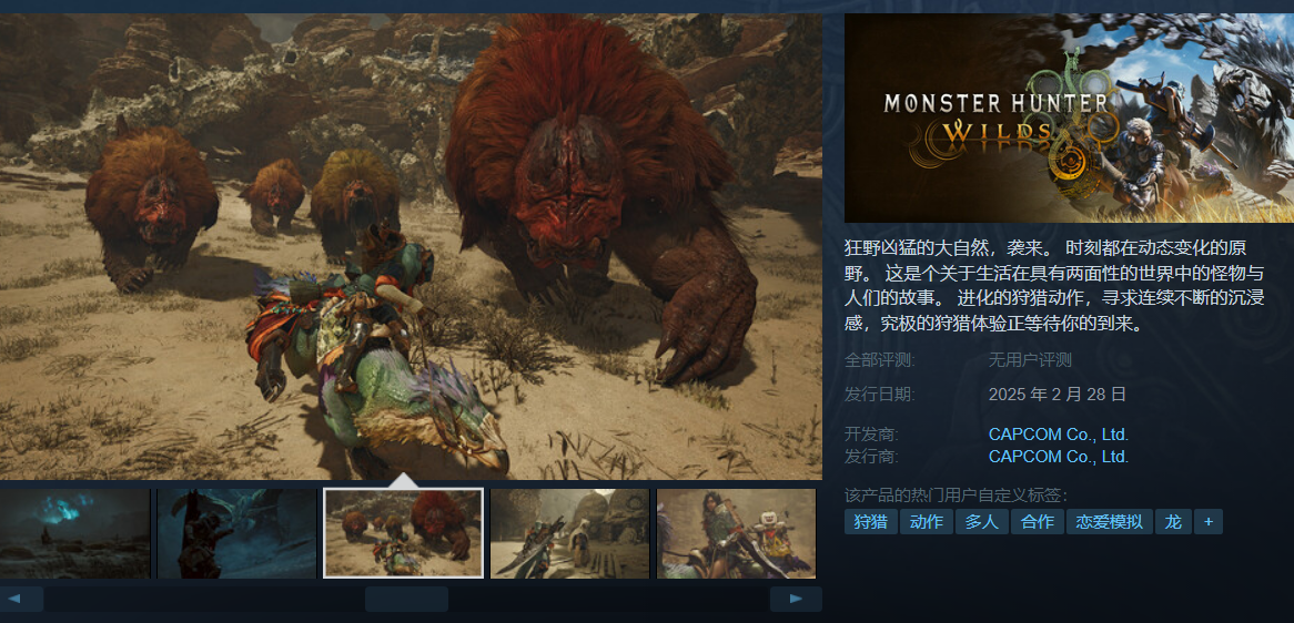 《怪物猎人:荒野》开测 46w玩家打破steam纪录 PC优化难绷