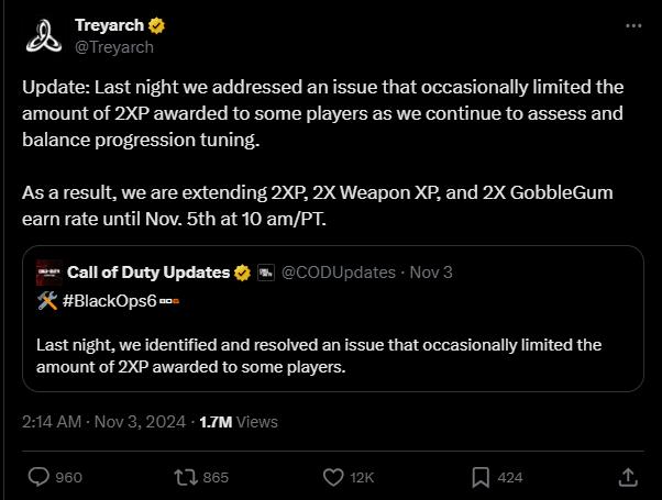 因奖励获取问题《使命召唤:黑色行动6》双倍经验活动现已延长