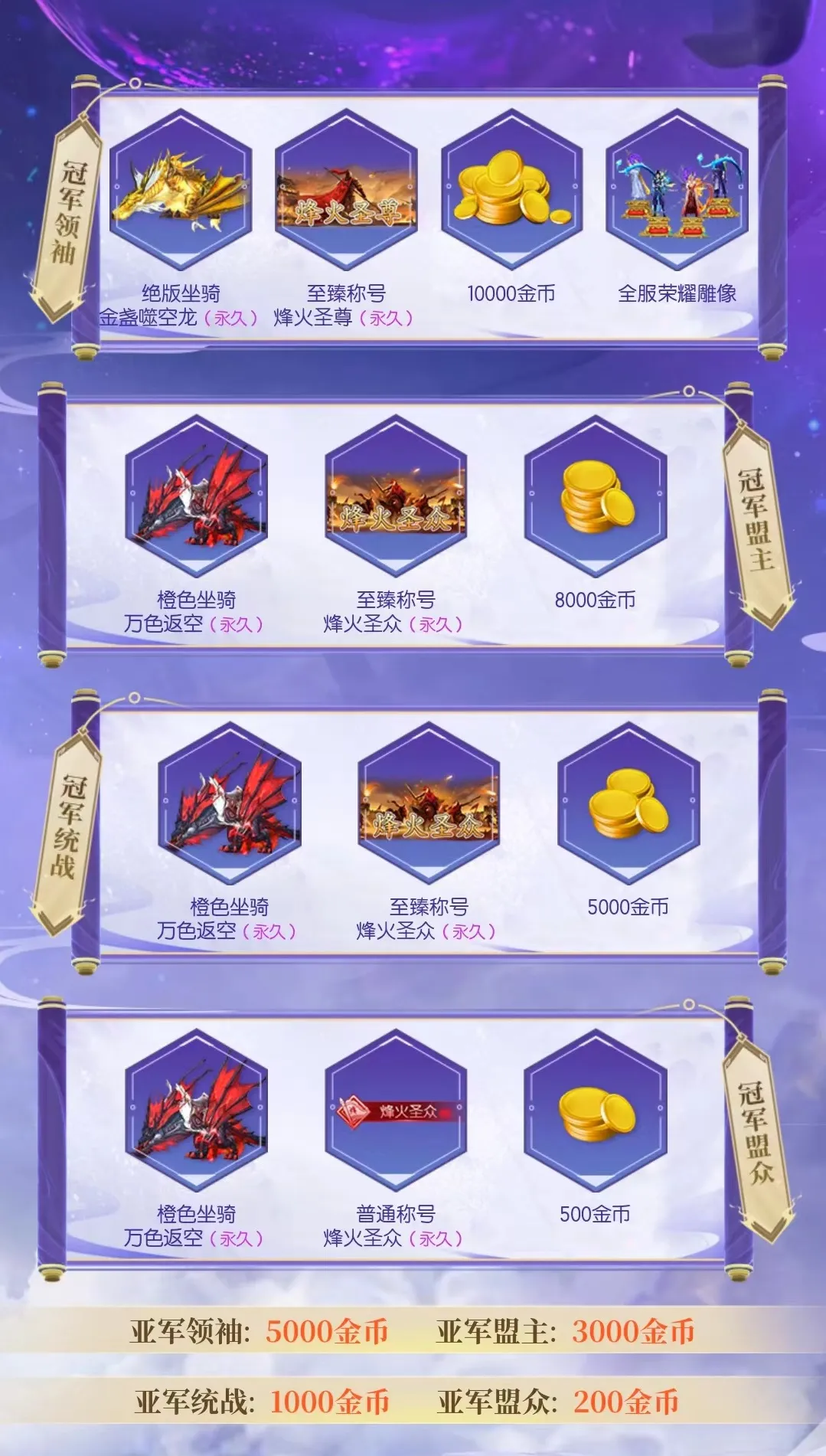 十一月 寒风初起,新章再续! 年度资料片“轩辕·封神篇”开启人族在神界的新征程。 11月14日 全新“封神服”正式开服, 本次封神服“新生24服·封神圣战” 即将重磅开服啦! 伴随新服的开启, “烽火圣战”专属赛事也将全面开战。 届时 冠军血盟可获得2w元现金奖励 以及超多丰厚奖励 今日&明日 策划小星光也会在19:30-20:00 准时空降新区 为大家发放百万金币红包哦! 今晚 百万福利助力新区, 天命者们 心动不如行动吧! 【“烽火圣战”专属赛事再启 2万现金奖励犒赏血盟】 本次封神服将再启 “烽火圣战”专属赛事。 赛事版本依然延用了上一届 “全新九霄之战升级版”的玩法 跻身烽火服前8名的血盟可参与 且本届“烽火圣战”冠军血盟 可获得2万元现金奖励 该奖励最终会由血盟领袖进行分配 与此同时 血盟成员也将获得超丰厚的奖励哦 这一波犒赏,轩辕是认真的! 永久绝版坐骑、全服荣耀雕像、永久橙色坐骑、 永久至臻称号、永久普通称号以及2万金币奖池; 奖励规格再次拉满!无不尽显诚意 广大天命者们速来热血一战吧! 【新服活动助力 海量奖励再次拉爆】 作为轩辕近七年最大的一次变革 本次新版本上线,开启的封神服“新生24服·封神圣战” 怎能掉链子呢? 新服活动助力必须安排! 开服前两日即送百万金币红包! 7日登录好礼即送橙坐骑:海棠金鱼 12元充值好礼再送橙配饰:烟火龙头 还有新生大区专属福利:8阶老灵体直送 等海量福利助力新区, 高规格的奖励池再次拉爆! 深秋迟暮,新冬可期! 轩辕全新“封神服”正式开服, 更多精彩活动即将陆续上线 快来入驻封神服“新生24服·封神圣战” 拿百万福利吧! |