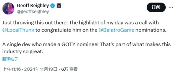 临近年末,各种年度游戏展开始陆续揭晓。而根据往年经验,那些能够获得提名,并最终摘得的游戏,基本都属于大厂带来的3A作品。 本届TGA游戏展,获得“年度最佳游戏”提名的作品,几乎都来自业内大厂。它们普遍有着相当不错的市场表现,开发制作成本都以“亿”为单位。 但在这之中却也有例外,一款由单人开发的独立游戏同样出现在了“年度最佳游戏”提名名单之中。这款作品,就是由独立游戏开发者LocalThunk制作的《小丑牌》。 《小丑牌》发布于今年2月,是一款以德州扑克为基底创作的肉鸽策略游戏。开发者只有LocalThunk一人,推出至今卖出了超过200万份。在Steam平台高达97%的好评率,也表明了本作在玩家心中的地位。 然而在发布之初,LocalThunk自己其实都对《小丑牌》不抱什么希望。作为闲来“练手”的作品,他预估的销量为6份。(只有4个朋友和父母会买)可待到游戏正式上线那天,《小丑牌》却凭借新颖的玩法和极佳的游戏性很快火遍了全球,并在首月就售出了100万份。 直到这一刻,LocalThunk才意识到游戏是真的火了! 之后,《小丑牌》受到了许多外界的称赞,《黑镜》系列的制作人沉迷其中无法自拔。因为游戏玩法简单,内容容量也不多,今年9月份《小丑牌》正式登陆了移动端平台,进一步发散着自己的影响力。 除此之外,《赛博朋克2077》、《以撒的结合》、《杀戮尖塔》、《星露谷物语》、《吸血鬼幸存者》、《我们之间》等知名的游戏IP,都与《小丑牌》进行了联动。由此可见,业内同行们对这款独立游戏的偏爱。要知道,在这之前LocalThunk只是位名不见经传的素人游戏开发者。 随着此番《小丑牌》获得“年度最佳游戏”提名,TGA的主持人Geoff Keighley也第一时间打电话祝贺LocalThunk。他表示:“正是因为有《小丑牌》这样由独立开发者制作的游戏获得提名,行业才能如此伟大。” 或许在正式公布获奖名单那天,《小丑牌》并不会真的成为“年度最佳游戏”,可这至少表明了一种态度。在包容性这一块,今年的TGA 游戏展落到了实处。 对于那些独立游戏开发者来说,《小丑牌》获得提名也能起到激励作用。它证明了,只要作品本身足够优秀,即便体量有限同样能够得到重视。 未来当然也希望能有更多优秀的独立游戏作品出现,给玩家们持续带来新奇的游戏体验吧。 |