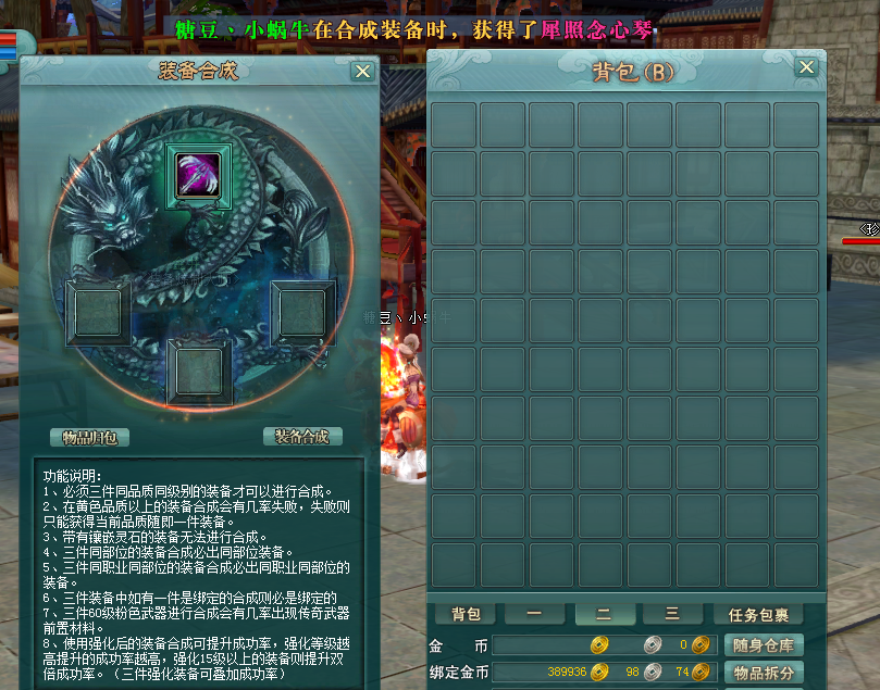 风中花,水中月!《剑啸九州》全新服务器《剑煮红颜》11月28日下午14点全新来袭!快来跟着小编看看今天带来的内容吧~ 这次大家着重介绍一下游戏内的最多人知道,熟悉但是还有很多细节没有注意到的系统,装备篇~ 【装备等级和品质】 1、装备等级划分为:每十级是一个装备等级段。 2、装备品质(由弱到强):白,蓝,黄,紫,还有更加强大和神秘的稀有装备。 一般情况下白色物品是没有太多用处的,玩家可以拆分白色装备获得经验丹和白色解封石,还可以直接卖给商店赚取金币。越高级的物品通常属性越好,价值越高,需要您更多的努力与奋斗,甚至还有运气! 【装备合成】 那么问题来了,在我们平时的游玩中,不论是任务还是副本中,每次背包里面都有大量的不符合自己职业的装备,我们除了拆分和出售商店还能有什么作用呢?那就是今天的重点,装备合成系统啦~ 装备合成系统是在江都“金井”处,点击金井找到装备合成,在装备合成栏里面就可以看到放入三件同等级同品质的装备后就可以随机合成一件同品质或者高品质的装备的哦~ 例如,三件紫色装备,是有概率合成一件粉装的。那么问题来了,既然合成系统是随机的,游戏内的职业有这么多,装备位置也这么多,应该如何提高概率呢,这就有一个合成小技巧了,我们可以准备三天同样的装备进行合成,那么在合成的时候就是必出同等级的装备,有概率合成高一等级的装备的哦~所以说在合成装备的时候可以提前准备好自己需要的装备,进行定向合成,合成高等级的概率就会大大变高的呢。 今天的介绍就到了这里了,目前《剑啸九州》全新服务器《剑煮红颜》正在进行预注册中,将于2024年11月28日火热上线,敬请关注哦~ |