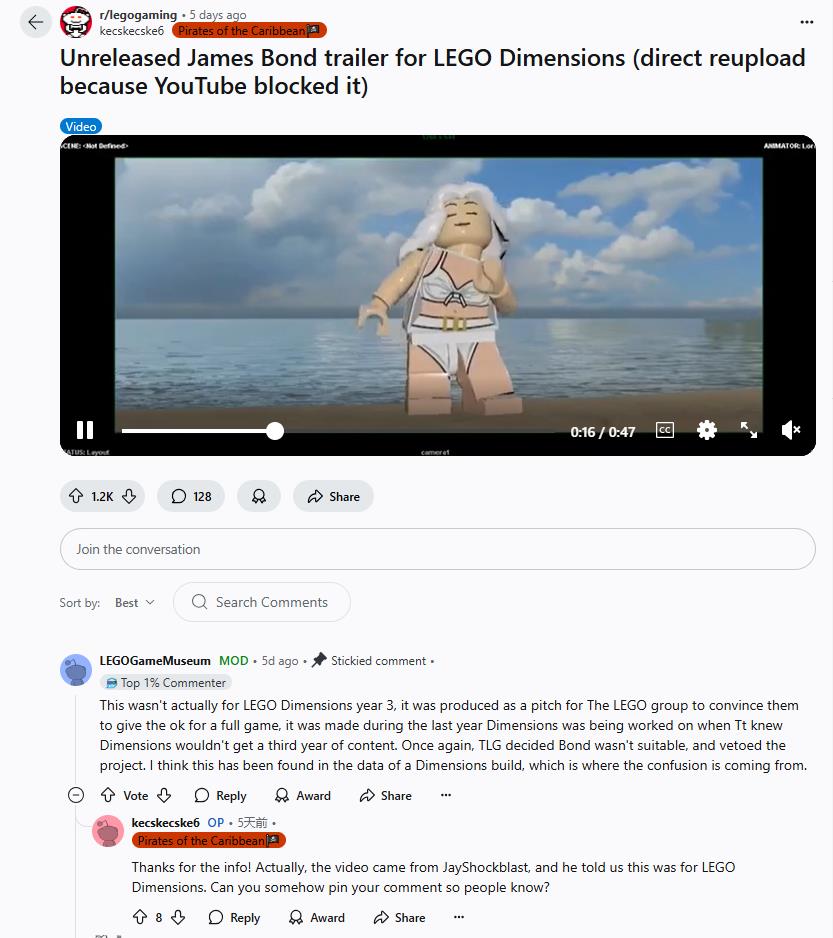 尚未公布的《乐高 007》游戏的预告在网上泄露