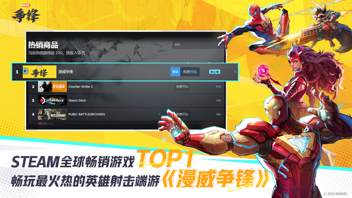 2024年是中国游戏不平凡的一年,前有现象级国产3A《黑神话:悟空》的破圈,后有网易自主研发的PVP超级英雄射击端游《漫威争锋》捷报频传,深受全球玩家喜爱。时近年底,上线仅19天的《漫威争锋》就斩获了多项全球性的“年度十佳”,无疑是时下全球最火爆的多人在线游戏! 12月24日,2024年“Steam年度最佳”榜单于今日新鲜出炉,该榜单统计时间为2024 年1月1日至2024年12月 15日,《漫威争锋》以同时在线人数超45万的瞩目成绩,位列“Steam年度最热玩游戏”铂金榜,同在该榜单的游戏还有《黑神话:悟空》、《艾尔登法环》、《CS 2》、《DOTA 2》、《PUBG》等。 《漫威争锋》于12月6日一经上线,Steam在线人数峰值就冲到了44万,排名仅次于《CS 2》。开服4小时内,游戏已位列Steam全球畅销榜TOP 1。截至12月18日,《漫威争锋》全球玩家已突破2000万人! 此外,《漫威争锋》还得到了多家海外专业游戏媒体的高度评价,其中,KOTAKU 将其列为2024年度十大射击游戏之一,丰富的游戏元素和角色设定令人着迷;另一方面,GameRant 将《漫威争锋》评为2024年度十大多人游戏之一,同期上榜的还有《超级马里奥派对狂欢节》、《使命召唤:黑色行动6》等知名作品。 作为网易与漫威合作的结晶,《漫威争锋》融合了顶级IP的魅力与成熟的团竞玩法。在这款快节奏PVP超级英雄射击游戏中,玩家将扮演漫威超级英雄或超级反派,以捍卫者、决斗家、策略家这三大类别组建全明星阵容,利用超能力在可破坏的地图上激战。不同的阵容组合还可以触发连携技能,多样化的游戏模式如占点、推车等,增加了战术多样性,为这款游戏提供了更多的博弈爽感。 游戏中除了有像惩罚者、黑寡妇这样使用枪械的英雄外,猩红女巫、海拉等其他角色还可以使用远程魔法攻击,而绿巨人和毒液又是强悍的近战角色,当然还有奇梗频出的鲨鱼狗Jeff、以中国功夫“气贯长虹”洗脑了国内外玩家的铁拳林烈。鲜明的性格,趣味的彩蛋对话,中国研发团队用心刻画了游戏里的每一个角色,让玩家真实体验到超级英雄对战的乐趣。 因此,《漫威争锋》得到了来自全球的多家媒体、无数玩家的高度评价是实至名归!上线成绩斐然,游戏品质过硬,表现抢眼的《漫威争锋》这回真真实实地火出了圈,为“国产游戏之年”打了一场漂亮的收官之战。 《漫威争锋》支持国内PC端(官服、Steam、Epic)游玩,国内玩家可以前往《漫威争锋》官网(https://marvelrivals.163.com/)进行下载,一起来体验这款火爆全球的PVP超级英雄射击游戏吧! |