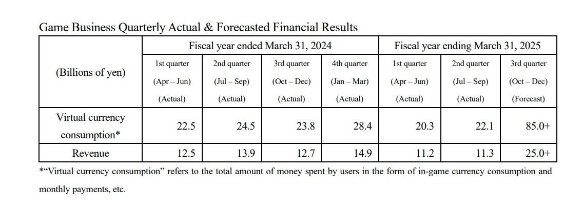 《宝可梦TCG口袋版》(Pokémon TCG)显然取得了成功的首发,这可能并没有让人感到意外。而这次成功的间接成果是,DeNA的财政年度财务状况得到了改善。 这家曾以《宝可梦大师》、《火焰之纹章:英雄》、《动物森友会: 口袋露营广场》以及诸多手机游戏而闻名的日本开发商分享了一份有关其游戏业务前景的资讯稿。 可以看到,本财年(将于2025年3月31日结束)的业绩并不理想,原因是运营重点放在了现有游戏上,而且公司对中国业务进行了大幅缩减。 《宝可梦TCG口袋版》于10月30日的发行彻底改变了局面。截至2024年12月12日,这款游戏的下载量达到了6000万次。尽管DeNA只是联合开发这款游戏,只能获得部分利润,但这款游戏基本上一举地扭转了DeNA的财务状况。 在下面,你可以查看用户在第三季度对虚拟货币消费的预测结果以及收入与之前季度的对比,很容易看出为什么DeNA持乐观态度。 《宝可梦TCG口袋版》适用于iOS和安卓,这是以皮卡丘和伙伴们为特色的热门实体集换式卡牌游戏的电子版本。 |