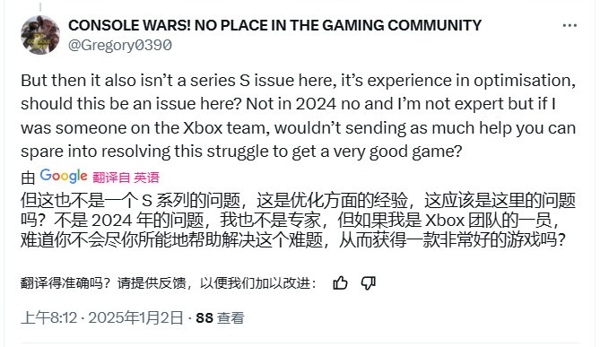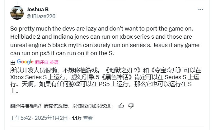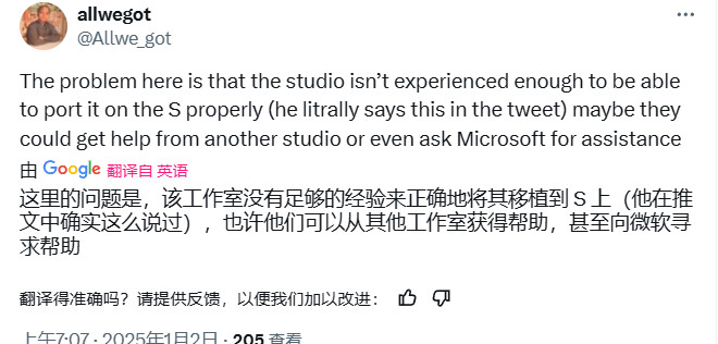 昨晚,游戏科学创始人冯骥在微博上表示,Xbox Series S有限的共享内存(10G)是《黑神话》Xbox版延期的主要原因。此话一出,马上就引起了海外玩家(Xbox粉)的热议。 有玩家表示:“看完整个发言后,冯骥实际上在说游戏科学缺乏优化经验,无法将《黑神话》移植到Xbox平台。但是,看看《夺宝奇兵》、《战锤40K:星际战士2》,《使命召唤:黑色行动6》,这些都比《黑神话》更好看,规模更庞大,但这些游戏在XSS上就能完美运行,所以显然是游戏科学自己的事儿,而不是XSS主机。” 玩家:“所以大概率就是游戏科学太懒了,不想移植这个游戏。《地狱之刃2》和《夺宝奇兵》都能在Xbox Series S上游玩,《地狱之刃2》也是虚幻5游戏,因此《黑神话》肯定也可以。只要游戏能在PS5上玩,那么它一定也能在Xbox Series S上玩。” 玩家:“我也是这么认为的(他们太懒了)。他们只想走阻力最小的路,甚至都不想把时间和资源浪费在这个项目中。相反,当其他要求更高的游戏运行良好时,他们会抱怨它“缺乏机能”。” 玩家:我有点担心《GTA6》了 玩家:那《地狱之刃2》、《战锤40K:星际战士2》和《微软飞行模拟》怎么说?这些在Xbox Series S上都能好好地运行。看起来只是他们自己不知道如何优化罢了。 玩家:这里的问题在于游戏科学没有足够的经验将其完美移植到XSS,可能他们需要得到其他工作室的帮助,或者向微软寻求帮助 |