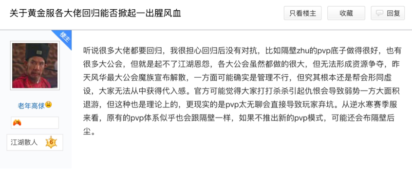 投身PVP的激烈较量,感受热血沸腾的对抗,这往往是众多玩家毅然入坑MMO网游的魅力所在。然而当我们回想10年前网游的黄金时代,那时全民热衷PVP的盛况场面,如今却难觅其踪。其中最大的原因,可能还是游戏官方想要的利益过多,不愿放手任何一块蛋糕。 大佬氪金猛猛砍,平民挨打毫无体验,这种数值碾压操作的失衡环境,让喜爱PVP的普通玩家失去了最初的乐趣。但就在最近,网易旗下的武侠MMO网游《逆水寒》,却放言要通过一次版本更新,引领7000万玩家“重生”回全民热血PVP的狂欢时代!官方为此,甚至慷慨让利数十亿,旨在营造一个所有人都能干架干到爽的PVP天堂。 具体是什么情况呢?据了解,《逆水寒》前段时间重磅爆料了一个将于1月10日上线的“黄金服”,并表示服务器以2018年公测时的629版本为参考,回归最经典的MMO游戏体系。新版本围绕装备重铸和PVP为核心玩法,官方不卖数值,极品全靠爆,同时玩家间可以自由交易。按《逆水寒》画的“饼”来说,黄金服将是一个遍地财富机会,大佬与平民共赢的存在。 消息一出就吸引到了喜欢此类玩法的玩家强烈关注,尤其是很多朋友好奇,PVP作为黄金服的主轴玩法,《逆水寒》会如何平衡氪金大佬和普通玩家的体验感,新的PVP体系到底能不能让人打起来。而官方连发的数条关于黄金服PVP体系的详细解读,给大家吃下了一颗定心丸。 首先《逆水寒》推出了一个名为“武勋”的结算系统,几乎囊括了新版本的所有PVP玩法,玩家只要参与对抗即可积累“战功”,按武勋值兑换丰厚奖励。这一系统完美地满足了PVP党不同的战斗偏好,确保大家都能选择喜欢的玩法拿齐绝大部分PVP奖励。 再一个就是,武勋体系可以看作新版本中玩家荣誉和尊贵江湖地位的象征,武勋值的高低成为衡量一个玩家实力和贡献的重要标准。因此游戏举办帮会联赛、比武大会等大型PVP活动时,高武勋值的玩家可谓是相当吃香。 尤其黄金服中装备属性随机赋予、交易自由不受限、官方还退出市场让利玩家,给所有人创造了无数赚钱的机会。这无疑鼓励了玩家更积极地参与PVP,打得越多话语权和资源分配优先权越高,甚至能敲开顶级联盟的大门。 除了上线全新PVP体系,《逆水寒》还在PVP玩法上进行了沿袭、升级与创新,黄金服的对抗程度放在《逆水寒》乃至网游史上,都是前所未有的激烈,让所有人都能重回那个满腔热血的PVP辉煌岁月。 比如黄金服的野外PK战斗,就保留了“连云寨乱斗”“六合青龙”等备受玩家欢迎的游戏经典模式。随着服务器人数扩容三倍、复活点数量增加、野外资源和玩法奖励全面上升等一系列革新,野外PK党的战斗快感将更加酣畅淋漓,不用担心打得不够过瘾,打不起来的问题。甚至勾得一部分玩家回味起昔日打到凌晨两三点的经历,催更黄金服上线。 而在帮会联赛方面,《逆水寒》来了一番大刀阔斧的迭代升级。引入的“动态战区”机制,使得帮会打架的对手和分组变换更丰富多样,规避打来打去都是“熟人局”的枯燥,为江湖格局变换增加可看性和新鲜感。 联赛前的“帮会竞武”玩法,则给了单个玩家独领风骚,靠实力C位秀一把的机会。而且帮会联赛改革后,参赛帮会数量增加,参赛门槛限制还降低了,这就意味着所有人都能匹配到旗鼓相当的对手爽战一把,开启全民电竞模式。 如果说帮会联赛是全民PVP狂欢的开幕,那超大型PVP赛事“皇城之巅”就是各路武林高手搅乱江湖风云的高潮!作为黄金服荣誉最高、对战最激烈的竞技玩法,“皇城之巅”将汇聚服务器顶尖帮会逐鹿厮杀,这也是神豪老板们彰显尊贵身份和高水平玩家成名江湖的最好舞台。已经能想象到大佬砸资源、砸福利,招兵买马卷军备竞赛的火热场面了。 而为了让各位陆地神仙战得带劲,《逆水寒》在皇城霸主的角逐过程中,设置了联盟合纵连横、据点资源抢夺等玩法,展现团队间的智谋博弈,更以百万赛事奖金、主城之内树立高达数十米的冠军雕像为胜者打造江湖无上荣耀,妥妥把PVP最纯正的竞技味拿捏住了。 上述融合了高度可玩性和丰厚福利的内容一发布,立刻抓住了众多玩家的目光,很多人纷纷提前与亲友集合组队,以便1月10日黄金服开启后能第一时间上号体验,战斗热情可以说是挡都挡不住了~ 老实说,看完《逆水寒》对黄金服巨量PVP玩法的精心打磨,的确能感受官方下了血本的诚意。无论是与志气相投的兄弟相约在联赛战场中一展身手,还是在野外PK中快意恩仇杀个痛快,或是跟随联盟的步伐,冲击“皇城之巅”的最高荣誉,1月10日开服后,PVP爱好者就将迎来最精彩的竞技狂欢盛宴,直接爽就完事儿! |