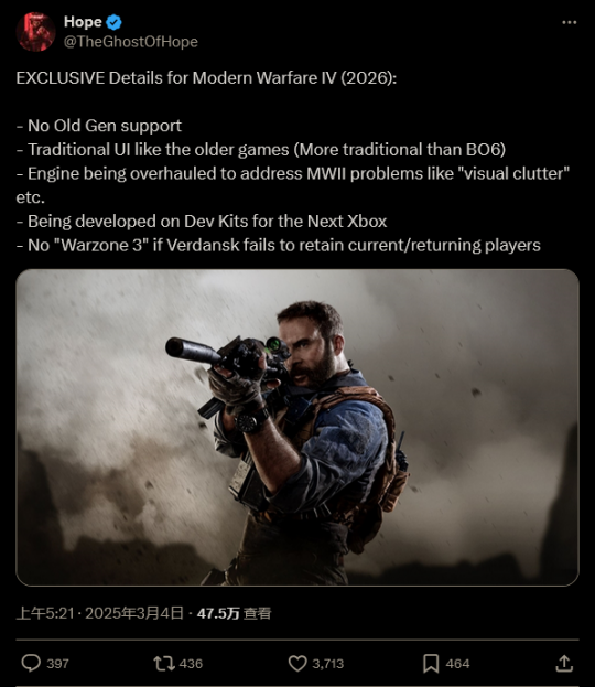 根据此前曾多次泄露正确信息的《使命召唤》泄密者 TheGhostOfHope 在社交媒体上爆料称,《使命召唤》2026 年的新作正在为下世代 Xbox 主机开发。这据称将是目前《现代战争》子系列的新作。 Hope 称,2026 年的新作与预计今年末推出的作品不同,根据此前的另一个泄露消息称,2025 年的《使命召唤》仍将登陆上世代 PS4 和 Xbox One 主机;而新作则是为了次世代开发,并且不会支持旧世代硬件。这也意味着如果该消息属实,2026 下半年我们将能够看到新的 Xbox 硬件。 目前,动视和微软官方尚未发布任何有关《使命召唤》2025 或 2026 年新作的任何消息。但根据 Insider Gaming 的内部消息称,2025 年新作将是《黑色行动2》的续作,有 Treyarch Games 主导开发。由小锤 Sledgehammer 主导的新作已经推迟至 2027 年。 |