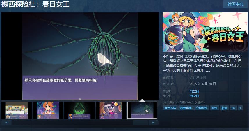 RPG恐怖解谜游戏《提西探险社:春日女王》Steam页面 4月30日发售