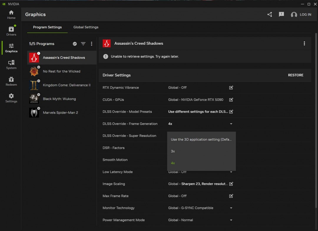 《刺客信条:影》即将于3月20日发售,PC版首发将支持英伟达DLSS 4和多帧生成技术。这意味着RTX显卡用户将能利用最新的Transfomer模型,而RTX 50用户则可以开启多帧生成。 如下图,英伟达已经在其Nvidia App上新增了DLSS 4,虽然目前尚不清楚是否会在游戏内原生支持DLSS 4,但至少可以通过Nvidia App来开启DLSS 4和多帧生成。 通过英伟达App,可以开启3倍或4倍多帧生成。另外还可以受益于最新的Transfomer模型DLSS 4超级分辨率技术。 除了英伟达的技术外,《刺客信条:影》PC版首发还会支持FSR 3.1和XeSS 2。PC版内置一个benchmark基准测试工具,玩家可以在正式游玩前测试自己PC的性能。 《刺客信条:影》PC版支持超宽屏,支持光追(全局光照和反射)。 《刺客信条:影》PC版预载3月17日晚12点开启,3月19日晚8点在育碧Connect平台首先解锁,随后于3月20日中午12点在Steam平台解锁。 |