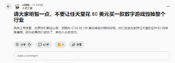 2025年关于游戏涨价的话题,国内外的玩家社区都已经讨论过多次。厂商们认为随着通货膨胀以及游戏开发成本的提升,现有的标准已经不再适用。 许多厂商都呼吁将3A游戏的定价提升到80美元,而任天堂则是最先付诸行动的人。在不久前的任天堂直面会上,Switch2平台的第一方大作,就喊出了80美元的高价。 这个高昂的价格(约合人民币586元),随即招致了不少玩家的反对。然而这个数字,极有可能还不是极限。 近期瑞士零售商Swiss Francs的页面,就泄露了今年最受期待的3A大作《GTA6》的售价信息,上面显示本作的售价为99瑞士法郎,约合112美元、847元人民币。很显然,这个数字远高于此前分析师预测的100美元的价格。 此前,任天堂公布的《马里奥赛车:世界》,是迄今为止能够确认的最贵的游戏。因为其昂贵的定价,网上吐槽不断。甚至有人认为,任天堂的这种做法是在毁掉整个游戏行业。 不过,任天堂官方却并不这么想。任天堂美国分公司副总裁Bill Trinen接受IGN的采访时就提到:“这款游戏内容丰富,为玩家提供了大量可玩性和探索空间。这款游戏的内容足以证明80美元的定价是合理的,并且这一策略也将应用于未来的游戏。” 因为涨价幅度过高,《GTA6》的游戏内容也被认为较之以往会更加丰富。分析师Matthew Ball就预测,Take-Two可能通过捆绑《GTA Online》货币或线上模式内容来合理化高价,这也是《使命召唤》系列用过的手段。 诚然,涨价能够为厂商带来更高的利润,但也意味着更大的风险。如果游戏本身的质量,无法匹配其价格,最终遭到的反噬可能会更加严重。 而倘若《GTA6》的最终价格真的达到了100美元这个层次,对于数字版用户可能会是一项打击。届时,更多的玩家会更倾向于入手实体卡带。相对应的,实体卡带的二手交易或将变得更为频繁。 不过,事情到了这一步,还不算全无转机。以往零售厂商也有过随便标一个价格数字当“占位符”,最终的售价并非如此的情况。一切,还得以R星官方公布的内容为准。 那么大家希望看到《GTA6》的售价是多少呢? |