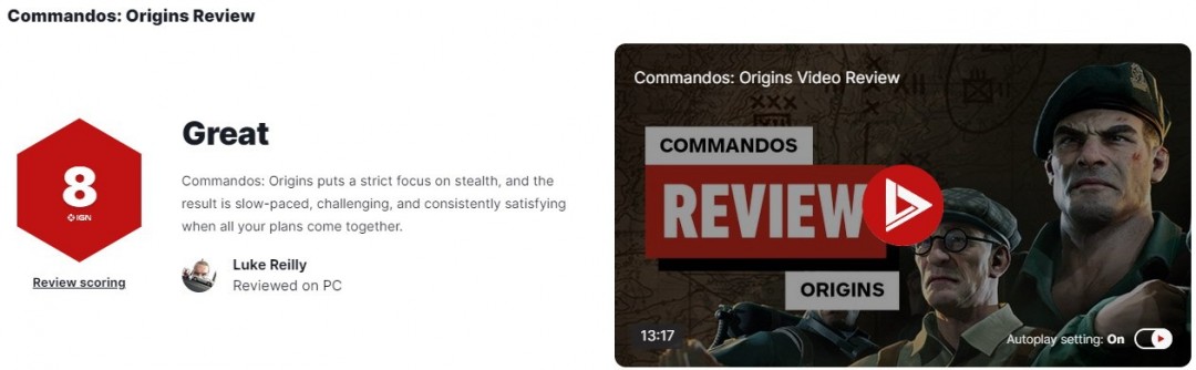 《盟军敢死队:起源》已正式发售,Steam上总评为“褒贬不一”。外媒IGN对该作进行了评测,并打出8分好评。IGN认为这款游戏在经典潜行战术玩法和现代简化机制之间取得了很好的平衡。 IGN评分:8分 优秀 《盟军敢死队:起源》将潜行元素作为核心,因此游戏节奏缓慢,充满挑战,但当你所有的计划实现时,你总是会感到满足。 IGN总评: 《盟军敢死队:起源》在经典潜行战术玩法和现代简化机制之间取得了很好的平衡,让你用各种方式解决了敌人太多的问题。虽然删除如物品栏管理之类的元素可能并不符合老玩家的口味,但这反而强化了潜行玩法的核心。玩家进入巨大、敌人密布的地图,需要耐心的计划与精准操作。在完美完成刺杀行动并悄然离去后,那真是成就感满满。虽然游戏目前有不少Bug,但快速读档可以拯救一切。 |