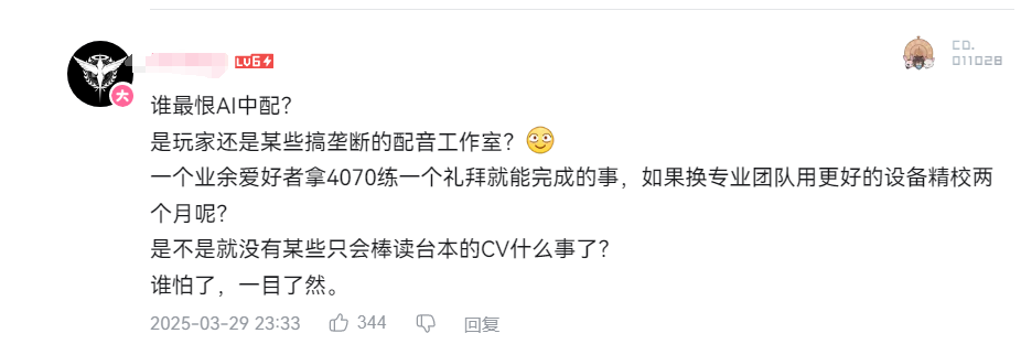 游戏本地化的重要性不言而喻,一款作品如果想要得到尽可能多的玩家关注,首先就应该消除因语言壁垒所设置的门槛。早期的国外大作普遍是没进行中文本地化处理的,这才有了大量国内玩家发出“we need Chinese”的呼声。 而时过境迁,随着中国市场的重要性不断提升,几乎所有想要走向国际的游戏,都会设置中文版本甚至中文配音。即便“头铁”如卡普空,在收到中国玩家反馈后也决定为《怪物猎人:荒野》添加中文配音,堪称“违背祖宗的决定”。 不过,最近在玩家圈子里,却发生了一件匪夷所思的事情。有位民间的mod作者“落花梧桐”用爱发电,为年初推出的爆款中世纪角色扮演游戏《天国:拯救2》添加了中文配音。 原本,这应该是一件能够造福玩家们的善举,结果mod的开发者“落花梧桐”却遭到了举报和封号处理。并且时至今日,都没有确切的封号理由。大家只能揣测,是因为这个mod内容采用了AI而遭到了恶意举报。 AI配音的运用现今已相当常见,像是前段时间爆火的“我老爸得了MVP”,就以各种二创的在互联网上刷屏。 “落花梧桐”开发的这项将《天国:拯救2》改为中配的mod,就采用了AI训练模型,以求让《天国:拯救2》中的一众角色,用中文演绎这段故事。 据悉,该mod拥有88种独立角色声线,拥有专属A声纹,并基于Few-shot模型微调。一次杜绝一人多声的现象精准适配严格,同时还对齐官方1.2版本字幕时间轴,通过英文字幕校准中文发音。而开发者则希望通过这种方式,提升玩家们的沉浸式体验 尽管是AI配音,但无论是语调还是声线都很符合原版的感觉。隐隐的译制腔风格,甚至还带来了别样的风味。更别说内容本身是免费的,所以玩家们的评价很高。因此在“落花梧桐”账号被封后,才会有许多人为其鸣不平。 至于举报他的人,一部分被认为是不喜欢中文配音的玩家;另一部分则是利益相关者了。 因为AI技术的运用,此前不少国外大厂的配音演员就曾发声抵制。在上个月的一个采访中,《博德之门3》卡菈克的配音演员萨曼莎·贝尔特,就明确表达了对于游戏开发中使用AI的反对意见。 国内的配音演员同样面临着这种情况,而需要提到的是,中文配音的要价相对海外的配音演员来说也是最高的。 不久前在NGA论坛,就曾有网友爆料过中文配音的报价。图片中显示,许多中文配音演员都是以/句为单位进行报价的,而非配音时长。关于这份爆料的真实性还存疑,但另一个爆款独立游戏《米塔》的开发者,确实提到游戏没有中文配音的原因是因为太过昂贵了。 为游戏添加中配对国外厂商来说绝对是一大挑战,不仅投入成本高,很多时候还得考虑效果是否能够达到预期,否则还会因此得到负面评价。 在这方面,许多独立游戏反倒显得没这么大压力。因为开发成本有限,玩家们往往会更加包容。譬如去年爆火的《沙威玛传奇》,就是通过AI来完成本地化工作的。并且由AI创作的洗脑歌曲,还让它在各大短视频平台火了一把。 当下,来自AI的挑战,确实对游戏配音行业带来了挑战。可就事论事,《天国:拯救2》的中配毕竟只是mod。在官方都没有对其进行处理的情况下(Steam创意工坊依旧能够下载使用),有人因为自身的喜好就进行恶意举报,就显得有些滑稽了。 好在mod开发者“落花梧桐”并没有气馁,即便自己号没了,但依然坚持对这个mod进行着持续更新。 未来也还是希望咱们的玩家社区能够更加包容,并始终保持活力吧。 |