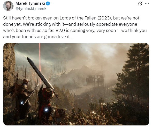 类魂动作RPG《堕落之主》于2023年10月发售后,10天内销量就突破100万份。然而1年半过去了,这款游戏还没有回本。 近日CI Games总裁Marek Tymiński发推文称:“《堕落之主》至今仍未回本,但我们的计划远未完成,我们会坚持下去。衷心感谢所有一路陪伴我们的玩家。2.0版重大更新即将上线——相信你和你的朋友们一定会爱上它……” 此前有报道称《堕落之主》总成本约6600万美元,其中开发成本约为4220万美元,营销成本约为1930万美元,实体版成本约为510万美元。看来本作处于“后劲不足”的状态,导致开发商至今未回本。 《堕落之主》2.0版重大更新将在4月17日上线,为玩家带来超大的惊喜。《堕落之主2》也已在开发中,预计于2026年发售。 |