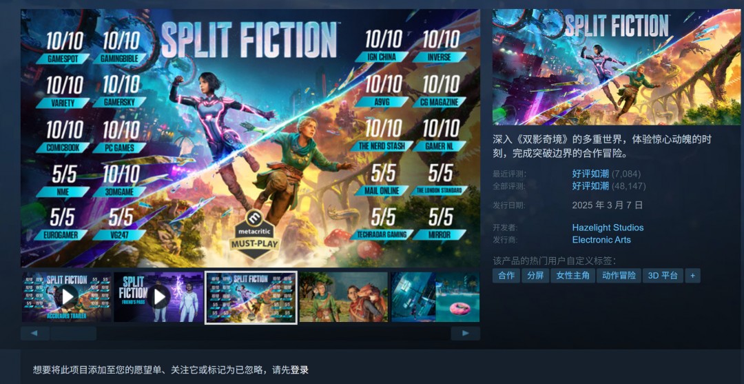 此前EA宣布《双影奇境》发售48小时,销量超过100万套。