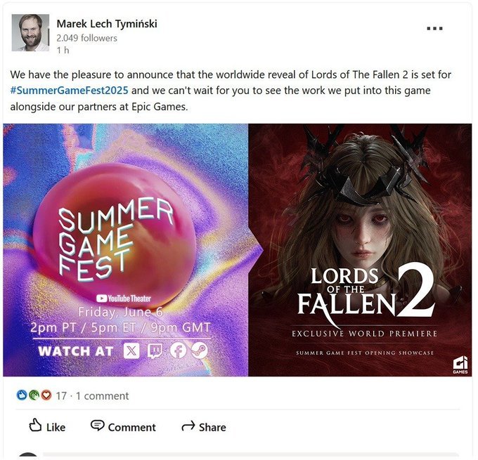 夏日游戏节将近,各种游戏新作和旧作重制的谣言情报满天飞。根据4chan网友帖子透露的情报,硬核魂like游戏《堕落之主》的续作或将于2025夏日游戏节揭晓内容。 在昨日,知名爆料人NateTheHate就透露在夏日游戏节上将会揭晓《Project 007》《古墓丽影》《与狼同行2》其中之一。今天早些时候更是有网友在4chan发帖透露《堕落之主2》将会在夏日游戏节亮相。 据发帖人称消息来源是开发商CEO的私人LinkedIn账号,后者在该平台称:“我们很高兴宣布《堕落之主2》将在2025夏日游戏节全球首曝,已经迫不及待想让大家见证与Epic Games合作伙伴倾力打造这款诚意之作。”并配以为夏日游戏节准备的宣传图。 《堕落之主》在相互连通的广袤世界中讲述了一段全新史诗角色扮演冒险之旅。邪神阿迪尔被人类打败很久很久之后,如今复活在即。玩家将扮演传说中的黑暗远征军,穿越生与死的国度,在这段史无前例的角色扮演体验中彻底推翻阿迪尔。见证跌宕磅礴的首领战,挑战应接不暇的高难度战斗,并沉浸于扣人心弦的细腻故事之中。 |