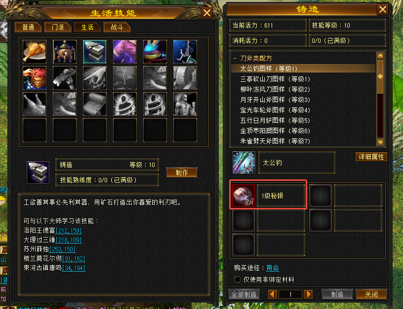 各位大侠好呀,龙妹给大家见礼啦 感谢各位大侠在游戏开测后的热情,今天龙妹特地掏出压箱底的福利玩法,教你轻轻松松挂机稳赚上万交子,助力大侠江湖之路,一起来看看吧! 【钓鱼】玩法上线 天龙经典钓鱼玩法复刻归来,轻松赚取海量启动资金,快来了解一下吧~ 【钓鱼】 属于生活玩法系统,需要消耗活力值,大侠可通过完成日常任务,在逐步解锁琅嬛宝箱奖励过程中,获取活力值,纯纯白嫖! 那么有大侠可能就会问了,天龙钓鱼一共分几步? 答:总共分3步 ①获取鱼竿 大侠可以在【技能】-【生活】分页中选择【铸造】,点击【制作】并在配方首页选择【太公钓图样】,消耗1级秘银即可获得【太公钩】鱼竿啦! 当然,各位大侠不使用鱼竿也可进行钓鱼,不过缺少鱼竿很容易导致跑鱼,想要获得钓鱼无敌BUFF,那就需要装备【太公钓】鱼竿啦! PS:1级秘银可通过商会便捷购买,仅需17金交子!瞬间回本有木有! ②找好钓点,钓鱼启动! 大家应该都知道,一个好钓点对于钓鱼佬意味着什么,那就是疯狂上鱼到爆护。 天龙归来的钓鱼点和经典天龙一致,建议大侠选择和自身钓鱼等级匹配的钓点,高效提升熟练度的同时,最大化钓鱼收益! 以下是《天龙八部·归来》全部钓点汇总 钓鱼1级:地点--无量山、剑阁、敦煌、镜湖、嵩山、太湖 鱼种--草鱼、青鱼 钓鱼2级:地点--西湖 鱼种--鲫鱼、箭鱼 钓鱼3级:地点--洱海 鱼种--鲢鱼、鲈鱼 钓鱼4级:地点--雁南 鱼种--平鱼、扁头鱼 钓鱼5级:地点--龙泉 鱼种--鳝鱼、油力鱼 钓鱼6级:地点--苍山 鱼种--黑鱼、秋刀鱼 钓鱼7级:地点--雁北 鱼种--斗鱼、梭鱼 钓鱼8级:地点--武夷 鱼种--鲳鱼、光背鱼 钓鱼9级:地点--石林、高昌、塔里木、火焰山 鱼种--银鱼、钩鱼、胭脂鱼、翘嘴红鮊 钓鱼10级:地点--草原 鱼种--鲑鱼、白鳍鱼 钓鱼11级:地点--梅岭 鱼种--骨舌鱼、珍珠鱼 钓鱼12级:地点--玉溪、辽西、南海、南诏、琼州、苗疆 鱼种--六线鱼、文昌鱼 ③卖鱼赚钱,发家致富! 大侠钓到的鱼,要是吃不完可卖给商会,换取海量交子,每天几百金交子,一周就能赚数千金交子,躺着赚钱就是这么简单! 经典天龙,轻松归来 不肝不氪,福利多多 原滋原味的天龙江湖,只等各位大侠归来! |