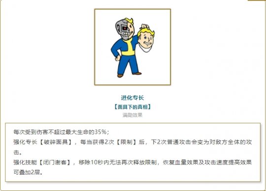 本周,《辐射:避难所Online》迎来新内容更新,新英雄SSR居民麦唐纳首发上线!新增内容优化和活动纷纷来袭。下面让我们一起来看看,本周都有哪些内容吧! 新英雄情报,来袭!SSR居民麦唐纳上线。 新英雄定位: 麦唐纳在《辐射:避难所Online》中将以波士顿邻居的护卫角色登场。 作为单兵作战型护卫角色,麦唐纳减轻医疗居民的治疗压力。 麦唐纳使用场景: 通用型角色,推荐用于医疗居民治疗压力较大,需要补足伤害的对局。 英雄职位:护卫 技能:闭门谢客;释放技能后的10秒内,自身无法再次释放技能,每秒恢复自身最大血量3.6%附加4162点生命,攻击速度提高30%。 英雄专长 进化专长 其他新增内容&优化 除了新英雄的上线,《辐射:避难所Online》还将迎来新的内容更新。新增头像资源;巅峰竞技场新赛季开启&新增皮肤叶龄恰少年;联盟争夺战新赛季更新后开启--修复噶抓战斗中“不再消耗【维修】点数”状态下治疗效果未生效的问题等。 《辐射:避难所Online》是一款辐射IP正版授权末日题材策略手游,领略在辐射世界观的剧情,在末日中生存竞争,感兴趣的赶紧试试吧! |