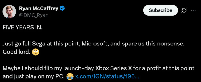 近期,微软再次调整Xbox Series X|S主机售价,分别升至650美元与400美元。这是过去几个月内的第二次调价,引发玩家社区强烈反响。自2020年发售以来,该系列主机全球销量约3000万台,但近期涨价行为被许多玩家视为微软逐步退出硬件市场的信号。 尽管Xbox业务整体表现处于历史较好阶段,硬件定价却持续攀升。涨价消息公布后,海外社交媒体平台涌现大量批评声音。有粉丝直接表示:“这根本不是关税问题。我认为微软是在故意定价,让自己退出主机市场。”?不少玩家认为,主机已完全失去增长动力,微软意图在彻底退出前最大化单台利润。 知名游戏记者Ryan McCaffery也发表评论称:“到了这个地步,不如直接全面学世嘉”,?将微软当前状况与世嘉彻底放弃硬件业务前的处境相提并论,建议微软应全面转向第三方软件开发。尽管官方曾提及关税等经济因素,但许多玩家认为这只是借口,实质是微软借全球经济形势逐步撤离主机市场。 截至目前,微软尚未就涨价动机作出明确解释。虽已承诺会推出下一代主机,但若继续采取背离消费者意愿的策略,Xbox硬件业务的未来将充满不确定性。另有观点认为,未来微软可能与华硕、联想等企业合作,以授权形式延续Xbox硬件生命。 |