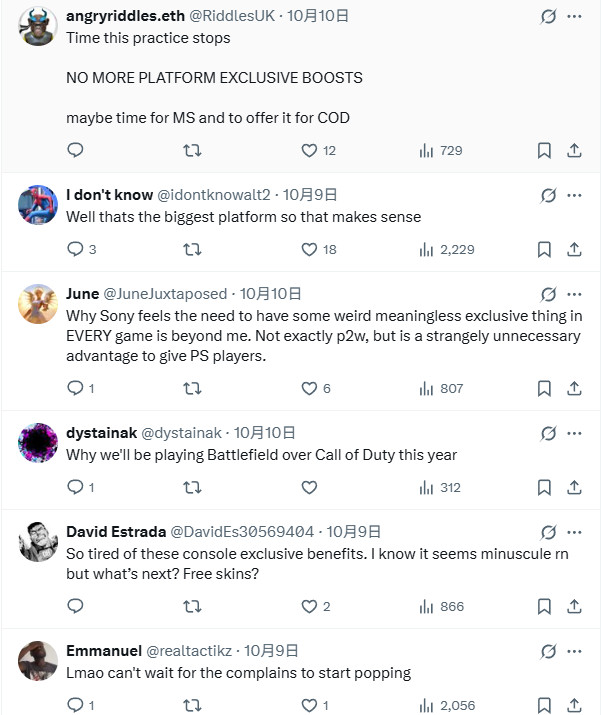 随着《使命召唤》回归Xbox,索尼开始将目光转移到《使命召唤》长期对手《战地》上。继先前有媒体发现索尼在全球各地推广宣传《战地6》后,今日又有外媒曝出《战地6》PS5玩家每玩一局比赛将比Xbox玩家多获得5%的经验。 外媒CharlieIntel发现,如果PS5玩家和两名或两名以上PS Plus会员组队,那么你的整个队伍将获得额外5%的经验。 但如果玩家是在PC上游玩,而小队中有两名PS5玩家,那么这种情况不会让你多获得5%的经验值。因为这只是PS Plus会员组队才有的经验值加成。 实际上,除了经验值外,PS5玩家还将享受以下福利: 使用“Battlefield Pr”令牌可在战斗通行证中获得额外等级跳过奖励 延长版双倍经验活动 因此看起来,索尼应该和EA签署了某种合作协议,但这也招致了玩家的厌烦,认为都什么年代了再搞这种毫无意义的小手段…… |