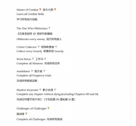 最难白金奖杯!《忍者龙剑传4》奖杯列表泄露
