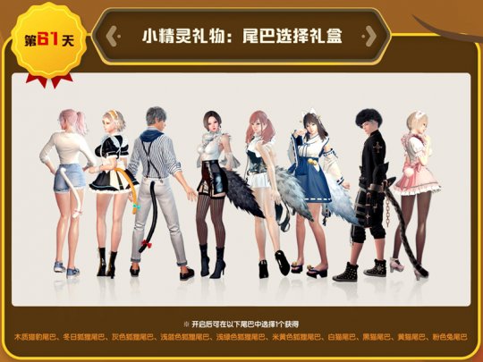 《洛奇英雄传》第13期小精灵签到竞赛正火热进行中,整个签到期为133天,英雄们每日仅需在线30分钟,即可从中获得多款提升装备的实用道具、助力作战的礼包、时尚外观道具以及有趣的物品道具哦!那接下来,让我们一起看看签到至指定天数可以获得的那些特别奖励吧! 【小精灵礼物:尾巴选择礼盒】 当英雄们累计签到至61天时,就可获得“小精灵礼物:尾巴选择礼盒”,礼盒中有10款风格不同的尾巴供英雄们选择其一获得。无论你喜欢细长灵活的猫尾巴,还是毛茸茸又暖和的狐狸尾巴,亦或是带有一些野性的猎豹尾巴,一定有一款适合你哦! 【包装好的冰屋】 英雄们累计签到90天的奖励为“包装好的冰屋”,也是全新上线的物品道具。可爱的雪人和企鹅,温暖的冰屋,以及出门即可冬钓的惬意氛围,非常适合即将到来的冬日哦! 【起源/红色起源之火礼包】 累计签到至110天的奖励为“起源/红色起源之火礼包”,经典武器外观搭配青色或红色火焰,英雄们可根据自己的喜好为自己心爱的角色选择! 【小精灵礼物:时装选择礼盒】 而满签奖励为“小精灵礼物:时装选择礼盒”,男性角色可从4款时装外观中选择其一获得,而女性角色则可从6款时装中选择一款哦!其中帅气约会套装和可爱约会套装为此次全新登场的时尚外观,温暖简约的经典搭配可免费获得! 这些,就是《洛奇英雄传》正在火热进行中的“小精灵签到竞赛”的主要奖励啦!每日签到即有好礼获得,不仅可以助力装备提升,还可将自己打扮得美美的哦!每日在线30分钟即可免费获得,英雄们加油吧! 《洛奇英雄传》运营团队 10月17日 |
