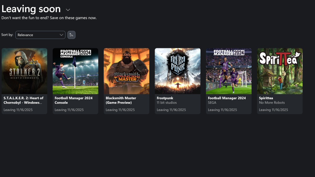 2025年11月,Xbox游戏通行证将有五款游戏从内容库中移除,其中包括备受期待的《潜行者2:切尔诺贝利之心》。所有游戏都将在11月16日正式下架,届时订阅用户不仅无法继续通过服务畅玩这些作品,也无法再享受订阅用户专享的购买折扣。 本月离库游戏完整名单: ·《潜行者2:切尔诺贝利之心》 ·《足球经理2024》 ·《足球经理2024主机版》 ·《铁匠大师》(游戏预览版) ·《冰汽时代》 ·《妖怪汤屋》 此次阵容调整存在清晰的更迭逻辑:《足球经理2024》的离库恰逢系列新作《足球经理2026》将于11月4日发售;原版《冰汽时代》的退出,则因《冰汽时代2》已于9月18日加入游戏库;而《潜行者2》的下架时间点,正位于其11月20日登陆PlayStation 5平台的前夕。 根据惯例,游戏通行证订阅用户在游戏离库前购买这些作品,可享受最高20%的专属折扣。 |