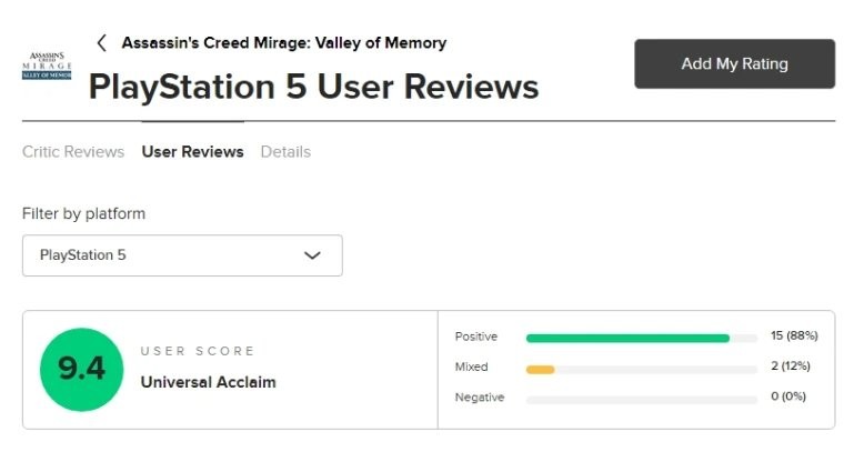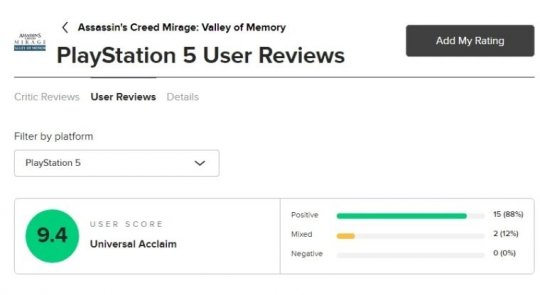 几乎没人对《刺客信条:幻景》的DLC"回忆山谷”抱有高质量的期待,毕竟它是免费的。但这次育碧却惊艳众人,"回忆山谷”DLC以其出色的品质令人惊叹。 该dlc首先弥补了《幻景》最大的缺陷之一,即此前支离破碎的剧情。在这个免费DLC中,关于巴辛姆寻找失踪父亲的故事线变得相当合乎逻辑且引人入胜。新区域阿尔乌拉的广阔也令人印象深刻,里面内容极为丰富,通关大约需要7到10小时。此外,育碧还对《幻景》进行了多项改进(特别是新增了难度级别并改进了控制系统,更侧重于跑酷)。 玩家们的兴奋之情如今在油管上随处可见,许多博主纷纷上传了他们对于这款DLC的热烈好评。而在评分网站Metacritic上该DLC的PS5版目前玩家平均评分高达9.4分(满分10分)。 希望育碧能保持这样的状态,持续提升未来可能发售的《刺客信条》系列品质以及接下来即将发布的《刺客信条4:黑旗》的重制版。 |