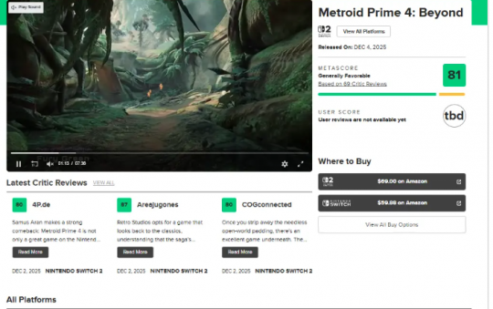 《密特罗德究极4》M站均分81系列的特色顶点之作