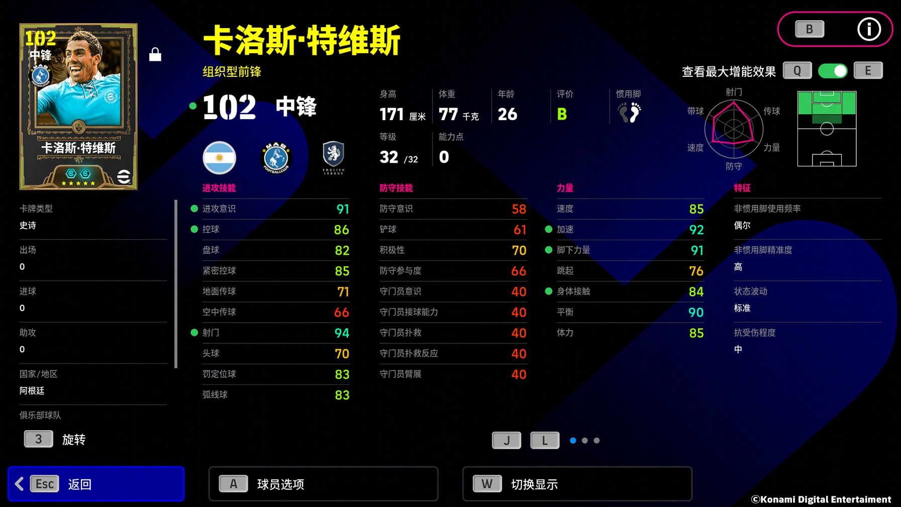 他是来自潘帕斯草原的野兽 用激情和热血点燃蓝月军团的复兴之火 他用进球帮助球队打破35年的冠军荒 用犀利突破镌刻蓝月崛起的序章 当野兽的咆哮响彻英伦赛场 一座奖杯见证着新时代的诞生! 双增能史诗 卡洛斯·特维斯即将登场! 更多活动详情一起来看看吧! — 活动一览 — 蓝月当空 累抽赠礼 实况足球 先拔头筹 — 活动详情 — 蓝月当空 累抽赠礼 自带双特殊技能的双增能史诗 卡洛斯·特维斯(特殊技能:无定型传球、旋风盘带)将通过【蓝月当空 累抽赠礼】登场!除此之外,你还有机会获得强力精选球员,想要补强球队的玩家们千万不要错过本次活动! 累计抽取达到指定次数即可分别获得【蓝月当空 史诗&精选免费签约】、【蓝月当空卡池 精选免费签约】、【蓝月当空卡池 精选自选免费签约】、【蓝月当空 自选免费签约】! 卡洛斯·特维斯 特维斯就像一头蓄势待发的猛兽,在绿茵场上挥洒着与生俱来的足球天赋!他矮壮的身体里蕴含着惊人的能量,左右脚都能完成致命一击。无论是强行突破还是灵巧抢点,他总能以各种方式威胁对手球门,成为球队锋线上最耀眼的存在! 2010-2011赛季,特维斯佩戴队长袖标成为球队崛起的旗帜。他联赛中轰入20粒进球,斩获金靴,更是带领球队重返欧洲赛场。而在国内杯赛上,他6场比赛贡献3球2助攻,一路率领球队高歌猛进,最终捧起国内杯赛冠军奖杯!这座冠军奖杯不仅终结了球队35年的等待,更标志着“蓝月王朝”的正式启航! *增能后球员总评可达102分,上阵最大总评可达106分 特维斯在【攻门+3】的增能属性加持下,其射门如出膛炮弹般势大力沉!他还拥有【无定型传球】的特殊技能,配合【组织型前锋】的比赛风格,特维斯在回撤接球时视野开阔,时常能为前插的队友送出手术刀般的直塞! 特维斯凭借【旋风盘带】的特殊技能,在进攻三区化身防守者的噩梦。他通过逼真的假动作与细腻的带球连续突破防守,随即轰出直挂死角的劲射,将个人技术与终结能力完美结合! *详情活动规则请以游戏内活动公告为准 活动时间: 2025/12/03 11:00 ~ 2025/12/17 11:00 实况足球 先拔头筹 在【实况足球 先拔头筹】玩法中,玩家在规定时间内进球即可获得胜利,完成挑战即可获得【随机技巧代币】、【经验值代币】等丰厚奖励。进入排行榜的玩家还可以额外获得更多奖励! 活动时间: 2025/12/03 11:00 ~ 2025/12/10 11:00 排名展示时间: 2025/12/10 12:00~2025/12/13 11:00 |