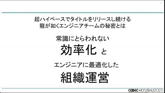 日前在游戏业界开发者大会CEDEC+KYUSHU 2025上,世嘉的著名如龙工作室开发者发表演讲,解释了《如龙》系列为何能够快节奏推续作的原因,一起来了解下。 ·或许玩家没有注意,近期《如龙》系列推出包括重制版在内的新作的速度越来越快,比如《如龙7外传 无名之男》于2023年11月9日上市,随后的2024年1月26日《如龙8》正式发售,实际上两部作品的发售间隔只有2个多月而已。 ·问题是开发者明确表示,“所有的系列游戏都是一个团队开发的并没有分组行动”,全部统计的话,20年间单单《如龙》系列就推出了40部游戏,排除外包的,自制的游戏也有30部之多。 ·这回如龙工作室开发者解释了产量惊人的秘密,就是超越常识的效率化与最适配工程师们的组织运营架构。 |