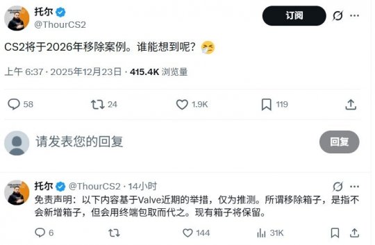 知名射击游戏分析师兼数据挖掘专家Thour分享了关于V社旗下第一人称射击竞技游戏《CS2》未来经济系统的预测。据这位内部人士透露,V社计划最早于2026年完全停止在游戏中添加新武器皮肤箱,转而用其他获取道具的方式替代。 这位博主随即安抚收藏玩家,澄清此举并非撤回现有武器箱,而是针对未来更新的形式调整。据推测,传统的战利品箱机制可能被类似"终端礼包"的模式取代。该推测得到皮肤交易平台Skin.Land的近期观察佐证——他们记录到每周掉落中稀有武器箱的发放已停止。平台数据显示,这可能是开发商彻底重构掉落系统的第一步。 专家认为,欧盟地区针对博弈游戏和战利品箱的立法收紧很可能是改革动因。转向让玩家在购买前知晓内容,或使用其他货币获取皮肤的系统,将帮助V社规避法律风险。社区用户已在评论区展开热议,预测若开发商真像《无畏契约》那样转向直售模式,旧收藏品价格可能上涨,整个皮肤经济体系或将迎来变革。 |