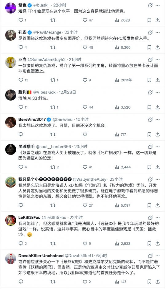 《最终幻想14》《最终幻想16》制作人吉田直树表示,《羊蹄山之魂》是今年给他留下最深刻印象的游戏!他本人也来自北海道,并称这款游戏非常出色地重现了羊蹄山的壮丽之美。 “今年我玩了很多不同的游戏,但只要一有时间,我仍然会忍不住继续游玩《羊蹄山之魂》。无论是在技术层面还是在制作水准上,这都是一款让我学到很多东西的作品。 我自己就是北海道人,过去作为一名滑雪爱好者,每次去二世古时,都会被羊蹄山的美景深深吸引。而游戏中对那份美感的再现,真的做得非常出色。” 海外网友在听到这个表态后,非常不满。有网友辛辣回复称与其宣传DEI的游戏,不如多关心关心自己的《最终幻想14》现在是什么鬼样吧…… |