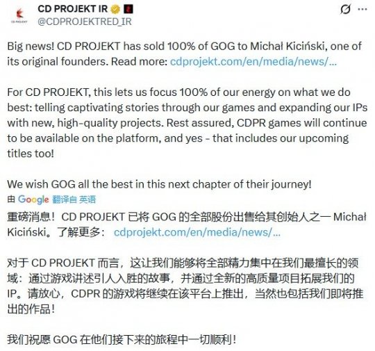 与CD Projekt分家!GOG平台被创始人买断独立运营