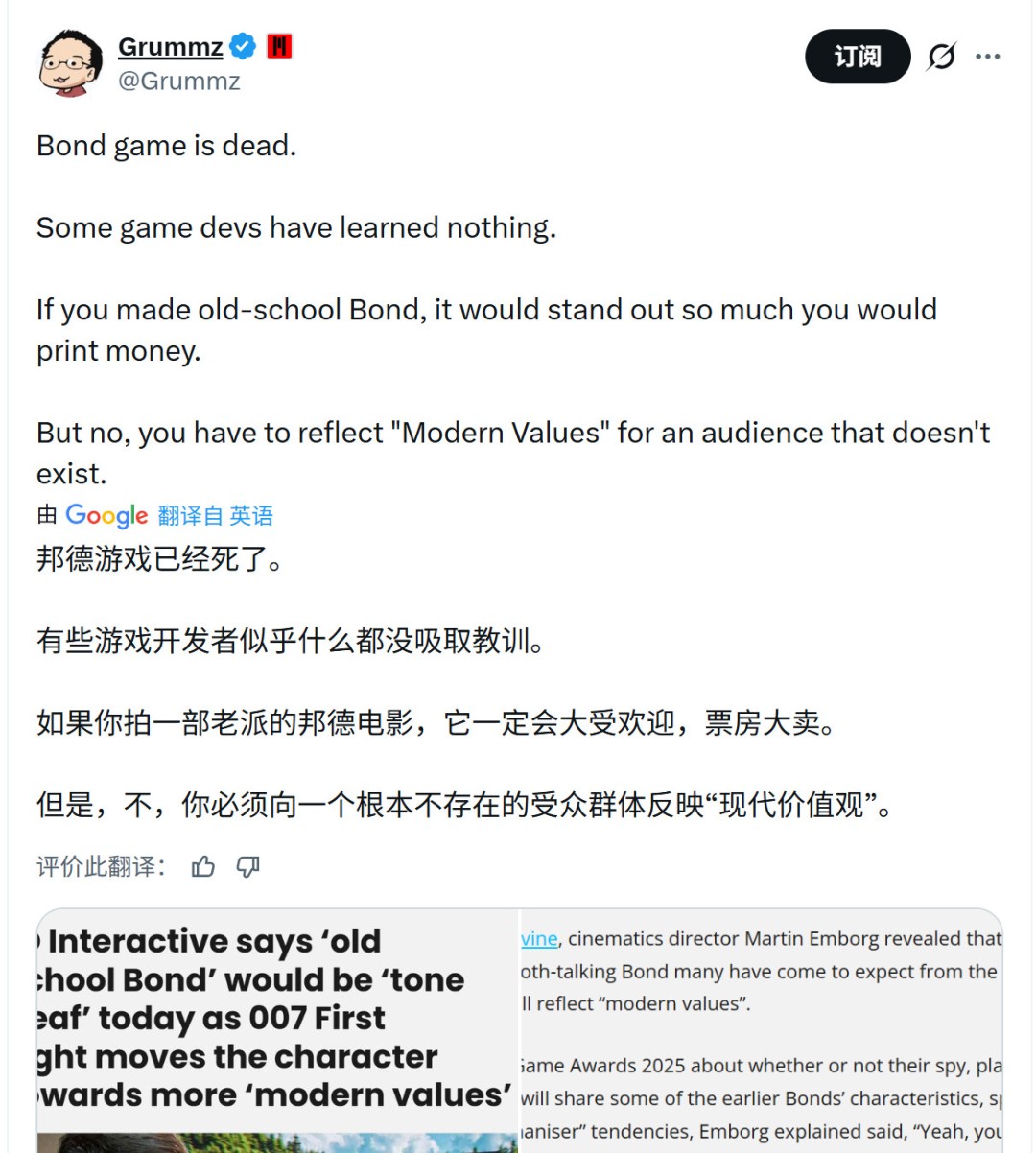 IO Interactive表示,他们打造的《007:初露锋芒》中的詹姆斯·邦德,将不会是那种上世纪60年代的“老派特工”,工作室直言,如果照搬那一套,在今天只会显得“非常不合时宜”。 这款由瑞典工作室IO Interactive开发的新作,原计划更早推出,如今在小幅延期后,已确定将于2026年5月发售。该作会先于《杀手4》上线,而IO方面也已承诺,《杀手4》依然会在未来推出。《007:初露锋芒》是一款潜行与动作并重的作品,主打更加“现代化的邦德形象”。 在接受Monstervine采访时,过场动画导演Martin Emborg表示,游戏中依然会保留一些玩家熟悉的、风度翩翩的邦德元素,但整体形象会是一个“现代人”,体现“现代价值观”。 在2025年TGA期间被问到,由《嗜血法医:原罪》演员Patrick Gibson饰演的这位新邦德,是否还会保留早期邦德的一些特征,尤其是“花花公子”“好色之徒”的一面时,Emborg回应称:“是的,你们会看到一些。” 但他同时强调,邦德这个角色本身一直在变化。“这个角色随着年代不断进化,而我们显然要反映当下的价值观。所以它不会是那种老派的邦德形象,那样在今天只会显得很冒犯、很不合时宜。他是一个现代的家伙。” 尽管不少人将《007:初露锋芒》在玩法上与IO的《杀手》系列相提并论,但Emborg表示,团队在战斗系统上下了很大功夫,希望带来一种完全不同的体验。 他说:“战斗非常强调身体对抗,因为邦德是一个很‘硬派’、很讲究动作的角色。这一点玩起来非常有趣,也是IO以前没怎么做过的东西。同时,我们在远程战斗上也加了很多层次,把细节打磨到了新的高度。整个团队都很渴望在这些方面放开手脚去做。再加上大型场面,比如卡车、飞机这些元素。” 《007:初露锋芒》确认延期两个月,发售日改为2026年5月28日,尽管IO已经表示游戏从头到尾“已经可以完整游玩”。IO称这款作品是他们“迄今为止最具野心的项目”。 |