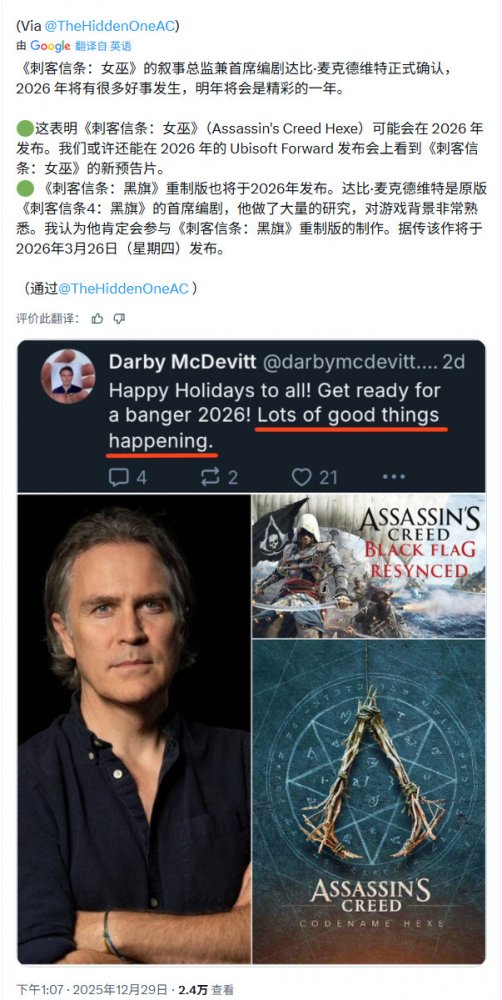 《刺客信条:女巫》将是《刺客信条》系列下一个主线作品,也是整个系列中最黑暗一作,目前已知消息汇总如下。需要注意的是,既然是育碧的3A大作,那自然少不了DEI元素。 主导开发工作室:育碧蒙特利尔 育碧蒙特利尔是《刺客信条》系列的发源地和核心工作室,几乎负责了所有“世代级主线作品”,包括《刺客信条》《刺客信条2》《刺客信条:兄弟会》,《刺客信条:启示录》《刺客信条3》《刺客信条4:黑旗》《刺客信条:大革命》《刺客信条:起源》《刺客信条:英灵殿》等。 为《刺客信条》系列下一部主线作品 剧情由系列老将、叙事总监Darby McDevitt执笔,他曾负责多部公认剧情质量极高的《刺客信条》作品,包括《刺客信条:启示录》(2011)、《刺客信条4:黑旗》(2013)、《刺客信条:英灵殿》(2020)和《刺客信条:英灵殿》DLC《诸神黄昏》(2022)。 Darby McDevitt最近确认“2026年将有很多好事发生,明年将会是精彩的一年”,暗示《刺客信条:女巫》以及《刺客信条4:黑旗-重制版》都会在2026年发售 Benoit Richer担任《刺客信条:女巫》的游戏总监,曾是《蝙蝠侠:阿卡姆起源》的游戏总监 Cheyenne Pualani Morrin(《星球大战绝地:陨落的武士团》《星球大战绝地:幸存者》)担任《刺客信条:Hexe》的支线内容首席编剧 育碧高管Marc-Alexis C?té表示,这将是一部“非常不同”的旗舰级《刺客信条》作品 育碧蒙特利尔的Yara Tabbara称,本作将呈现“强烈的女性能量” 游戏被设计为“在系列历史上留下深刻印记” 主题围绕“巫术”展开,“HEXE”在德语中意为“女巫”,源自古德语“Hagazussa”,这一点也体现在预告片画面以及官方Logo/主视觉中的五芒星元素上 传闻/泄露信息: 故事背景设定在16世纪的中欧地区,聚焦当时席卷欧洲大陆的“猎巫狂热”,这一历史时期导致约8万人在猎巫审判中被处决 Ezio的妹妹Claudia Auditore可能会在《刺客信条:女巫》中登场 游戏可能是一部复仇故事,主角Elsa的母亲在猎巫审判中被处决 游戏整体情况: 目前仍处于相对早期的开发阶段 预计发售时间为2026年或2027年 整体体验更加线性 仍保留一定程度的开放世界探索 玩法风格更接近早期《刺客信条》作品 主角: 只有一名女性主角,最初名字为Elsa(现已更改) 主角拥有超自然能力 具体能力细节尚不明确 她似乎正在被16世纪的德国士兵追捕 可使用法术附身到附近的一只猫身上 玩法细节: 玩家可以操控这只猫,通过推倒玻璃瓶并将其摔碎来吸引士兵注意力 演示画面呈现出阴暗、压抑的城市环境,街道为鹅卵石铺设 游戏可能会引入“恐惧系统”,灵感来自《刺客信条:枭雄》DLC《开膛手杰克》 |