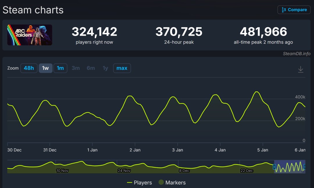 据分析公司Alinea Analytics估计,Embark Studio的第三人称撤离射击游戏《ARC Raiders》,其销量或已突破1200万,创下新的里程碑。 不仅如此,该作的日活还创下了新纪录。昨天有超过320万玩家登录游戏,在冬季假期的最后几个小时里还在游玩这款游戏。 《ARC Raiders》于2025年10月发售,一经推出便成为Embark Studios迄今为止最成功的游戏,在Steam平台同时在线玩家超过48万,主机平台的玩家数量更是难以估量。 游戏首周销量突破250万份,仅仅一周后,销量便突破400万份。诚然,Embark Studios使用GenAI技术引发了不少争议,但这似乎并未影响游戏的销量,也丝毫没有影响它在年底颁奖季到来之际,成为多人游戏领域热议的焦点。 根据谷歌的数据,它是年度搜索量最高的电子游戏,也是2025年Steam收入最高的游戏之一。 |