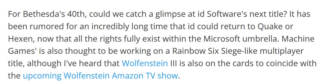 《德军总部》系列开发商Machine Games正开发第三款《德军总部》游戏。此外,据Windows Central和Kotaku的独立报道,这家位于瑞典的Bethesda旗下工作室也在开发“一款类似《彩虹六号:围攻》的多人游戏”。 Windows Central报道称:“对于Bethesda成立40周年,我们能否一睹id Software的下一款作品?长期以来,一直有传言称id Software可能会回归《雷神之锤》或《毁灭巫师(Hexen)》,毕竟现在所有版权都已归微软所有。而Machine Games也被认为正在开发一款类似《彩虹六号:围攻》的多人游戏,不过我也听说,为了配合即将播出的亚马逊《德军总部》电视剧,《德军总部3》也在开发计划之中。” Machine Games于2024年底推出了广受好评的《夺宝奇兵》电影改编游戏,其最后一款《德军总部》游戏,即合作游戏《新血脉》,于2019年发售。 去年,MachineGames工作室负责人Jerk Gustafsson承认,开发商还没有结束《德军总部》的故事,并且希望制作该系列的另一部作品。 “第一款游戏主要讲述的是主角BJ的故事,他很清楚纳粹赢得了战争,但对他来说,这也是一段非常个人的旅程,但与此同时,他遇到了安雅,开始意识到除了与纳粹作战之外,还有其他因素在起作用。” “然后,进入新巨像,你身边就会围绕着一群人,成为抵抗组织的一员,加入一个更大的团体,就像加入一个大家庭一样,但与此同时,你也在为组建自己的家庭做准备。” 他继续说道:“我认为这一点很重要,因为我们一直把这看作一个三部曲。所以,对于BJ这个角色来说,即使在id Software最初的几周,当我们规划《新秩序》的时候,我们就已经有了至少这个角色的计划。第二部会发生什么,第三部会发生什么。” “我觉得这一点很重要,因为至少我希望,我们还没有结束《德军总部》的故事。我们还有故事要讲。” |