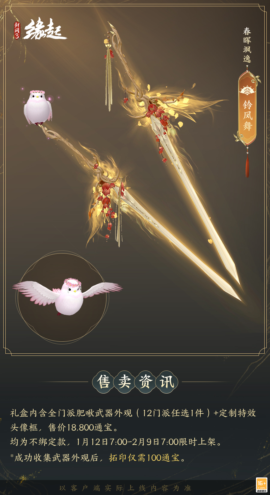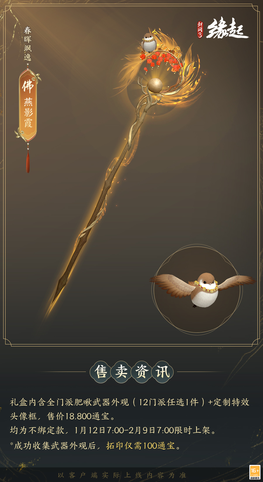 啾啾喳喳闹新岁,《剑网3缘起》全新武器携肥啾头饰新春送福!