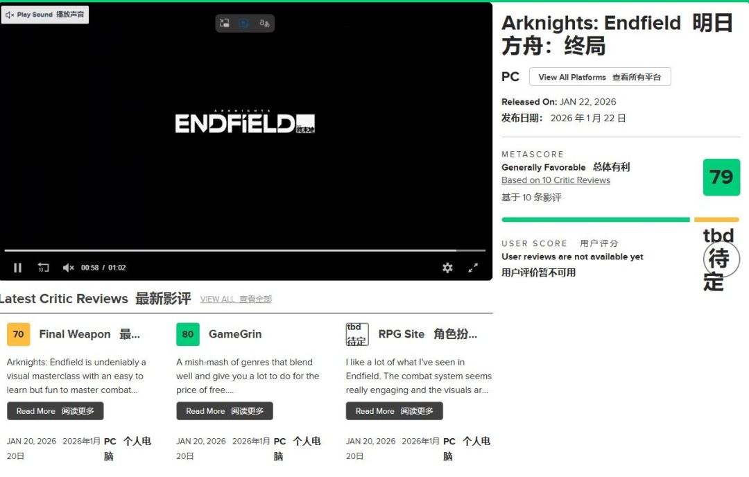 由鹰角网络开发的3D即时策略RPG《明日方舟:终末地》首批媒体评测现已解禁。游戏在Metacritic平台获得了综合评价79分的佳绩,多家媒体肯定了其在玩法融合与视觉表现上的野心。 Gameliner - 90分 评测认为该作是“一次雄心勃勃且信心十足的进阶”,呈现了强劲的实时战斗、引人入胜的世界与出色的视听表现。尽管抽卡机制与微交易仍是弱点,但它们几乎未影响玩家免费享受完整游戏体验。评测总结其为“粉丝必玩之作,对新玩家而言虽略有门槛但回报丰厚”。 CGMagazine - 90分 媒体指出,《终末地》成功融合了流畅的战斗、精密的工厂建造以及类似《死亡搁浅》的共享建造要素,创造出一款与众不同的抽卡RPG。 Jeuxvideo.com - 85分 评价认为游戏在首发时已具备坚实的竞争基础,其精炼的工业美学、动态战术战斗与原创工厂系统构成了足够鲜明的特色。但玩家需克服技术术语、繁多教程与复杂菜单带来的初期门槛。游戏的长期成功将取决于后续更新能否延续这一良好开局。 Gamer Escape - 80分 评测以“一款非常有趣但很难上手的游戏”概括体验。评测者欣赏游戏深度,认为其能提供与投入时间对等的回报,且并非必须全盘掌握所有系统。作为免费游戏,其内容量已堪称“超值”。 Hardcore Gamer - 80分 媒体将游戏形容为“一个同时朝无数方向拓展的庞大存在”,游玩方向高度由玩家自主决定。这种广阔的设计既带来了自由,也呈现出一定的复杂性。 整体而言,《明日方舟:终末地》凭借其独特的工业美学、融合实时战斗与策略建造的玩法,在首发阶段获得了多数媒体的积极评价,被视为系列一次成功的革新尝试。 |