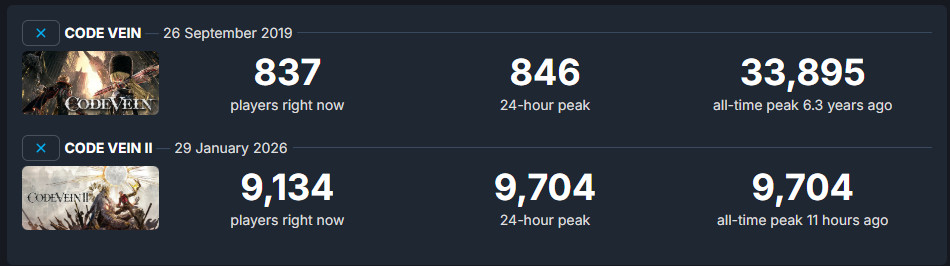 《噬血代码2》现已在昨天正式发售,目前游戏在Steam上的评价为“褒贬不一”,在1764篇评价中好评率只有52%。 Steam在线峰值也同样不理想。根据SteamDB统计,《噬血代码2》Steam同时在线峰值没有过万,只有9704人,而6年前的《噬血代码1》,Steam在线峰值都有33895人。可以说,《噬血代码2》在线连前作的三分之一都不到。 《噬血代码2》主要问题在于优化稀烂,画面过时(此前被外媒吐槽是PS3级),有中文玩家留言称“优化和画面但凡占一条好的,都能凭着初代的情怀玩下去,怎么做到连初代都不如的……”。 值得一提的是,《噬血代码2》官方给出的PC配置,最低配置需要GTX 1660 Super显卡,但只能玩1080P/低画质/30fps。要想1080P/高画质/60FPS游玩,官方推荐使用RTX 3080显卡。是的,你没有看错,RTX 3080显卡玩这个画质的游戏只配1080P…… 此外,《噬血代码2》中文版和欧美版一样遭到了和谐,私人创建角色还用上了A/B体型,而非传统的男女。捏脸系统跟上一代更是没法比,美术是肉眼可见的退步,“落后一个时代的画面和地图设计,优化倒是非常激进嘛,我5080愣是被你这游戏搞力竭了”。 |