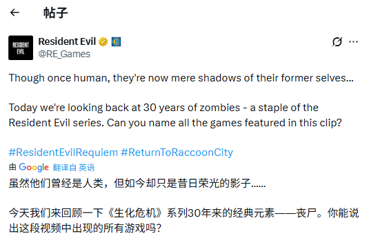 近日,卡普空发布了一支特别纪念视频,庆祝《生化危机》系列迎来30周年。视频回顾了整个系列中所有出现过丧尸的作品——这一元素正是奠定该经典恐怖系列整体风格的核心所在。 在视频中,开发者邀请玩家回顾系列三十年的发展历程,强调那些曾经的普通人,随着时间推移逐渐沦为昔日自我的“残影”。丧尸始终是《生化危机》最具代表性的标志之一,也是整个系列的重要象征。 “他们曾经是人类,如今却只剩下过去的影子……今天,我们回顾《生化危机》系列中30年的丧尸历史——这一不可或缺的组成部分。你能认出视频中出现的所有作品吗?”官方在视频中如此写道。 与此同时,卡普空也在为系列新作的发布做准备。《生化危机9:安魂曲》将于2026年2月27日登陆PlayStation 5、Xbox Series X|S、Steam、Nintendo Switch 2、Epic Games Store以及GeForce NOW平台。 |