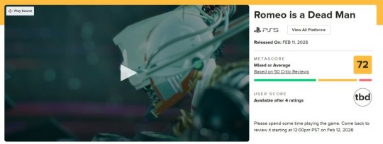 由日本知名游戏制作人须田刚一打造的动作游戏新作《罗密欧是个绝命侠》现已在Steam与主机平台发售,本作的评分也已在游戏评分网站Metacritic上公布。 本作目前媒体评价褒贬不一,M站评分72分。评测中既出现了9/10的盛赞,也不乏4.5/10的批评。不过有一点多数评论家们达成了一致,那便是本作带有作者强烈的个人风格。不过,这种个人风格十分挑受众,因此有人认为这是Grasshopper工作室巅峰传统的回归,也有人认为这是粗糙失衡的实验之作,标志性的幽默感难以弥补重复的游戏体验。 以下是部分评论: CGM (9/10): 如果你是须田刚一的粉丝,你一定会爱上这款游戏。如果你还不是,那么玩过之后就会成为他的粉丝。 GamesRadar (4/5):须田刚一近年来最佳作品,将爽快战斗、流行文化梗与持续迸发的创意完美结合。 IGN (7/10):游戏像是无数个零件的集合,它们不一定总能整合到一起,但让人回味无穷。 GameSpot (5/10): 艺术风格不足以弥补战斗与探索的冗长乏味。 Stevivor (4.5/10): 它确实拥有独特之处,但这份特别未能弥补其平庸的设计。 |
